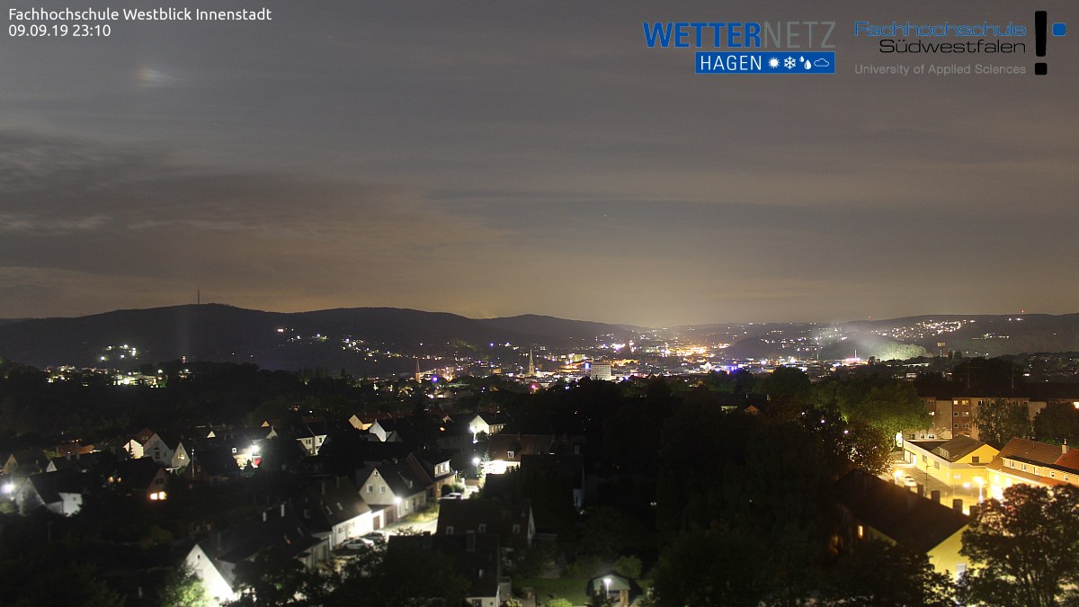 gestern Abend hat eine andere Webcam, in Hagen, einen rechten Nebenmond aufgenommen. Leider war der Mond schon aus dem Bild rausgewandert.