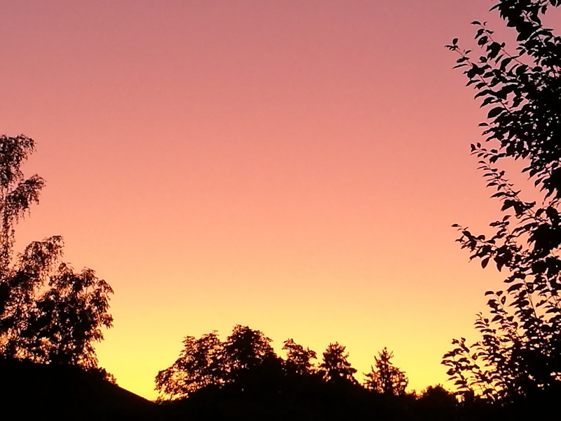 Gestern Abend zeigte sich ein auffälliges Purpurlicht. Diese angenehmen Sonnentage im zentraleuropäischen Hoch sind wahre Wohlfühlwettersituationen, trockene Luft, keine Schwüle und bleierne Schwere, Zimmertemperaturen, kühle Nächte zum Durchschlafen,laue Lüftchen und sternenklare Nachthimmel.