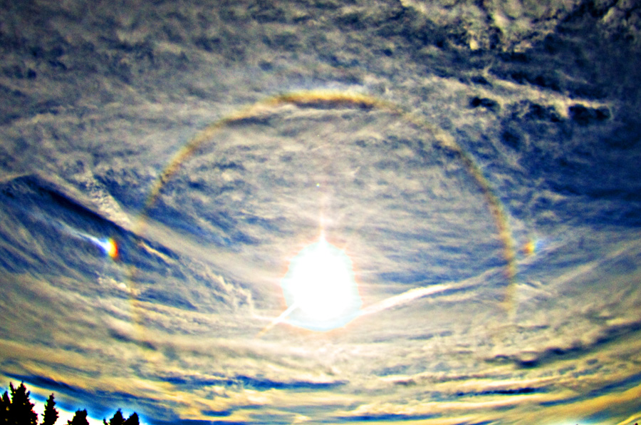 Etwas südwestlich von dir, im Erzgebirge, konnte ich auch ein bisschen was beobachten: 22°-Ring, beide Nebensonnen und den ZZB. Die rechte Nebensonne wurde kurzzeitig sogar mal richtig hell und farbig: