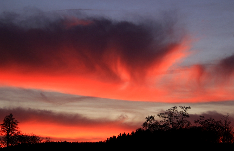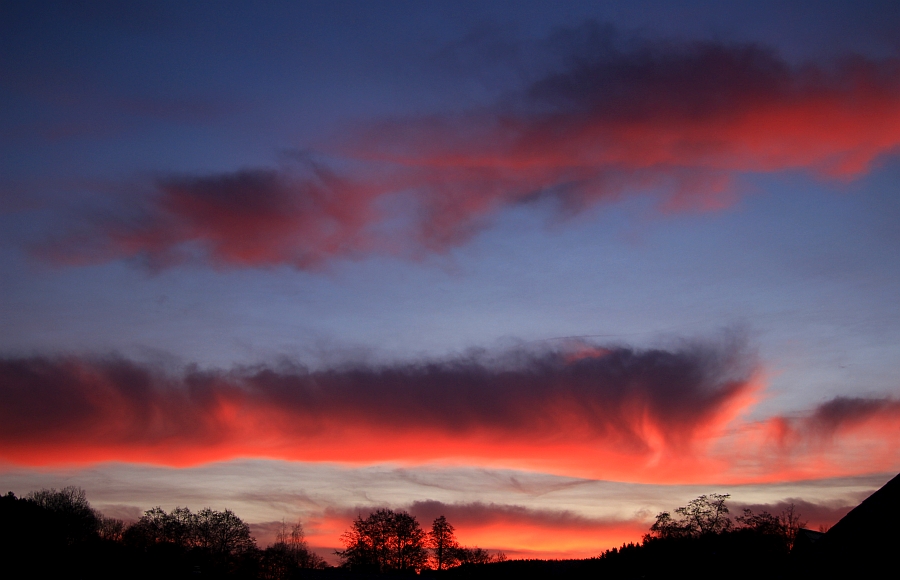 Hier in Schwarzenberg gab es heute ein nettes Morgenrot mit mammatusartigen Strukturen im Süden.