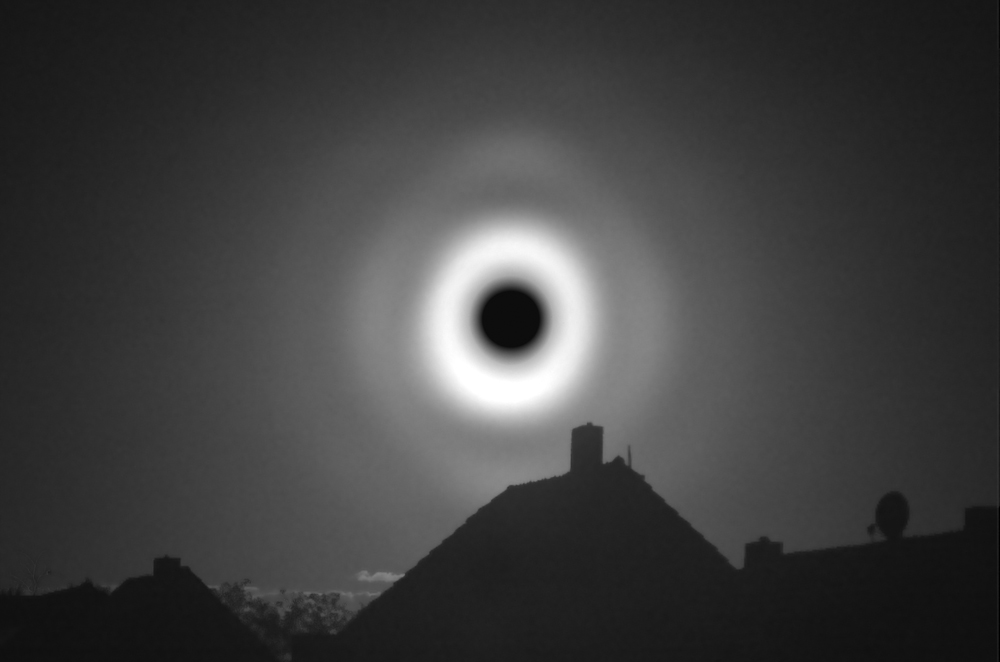 18:13 MESZ (mit ein paar Wolken), f = 200 mm: 18:41 MESZ, f = 95 mm, ein "Lehrbuchbeispiel": Rot minus Grün: In der Farbkanaldifferenz kann man noch den 4. Ring erahnen. Das war die beste Qualität bisher in diesem Jahr. Vielleicht bringen die nächsten Tage noch mehr...