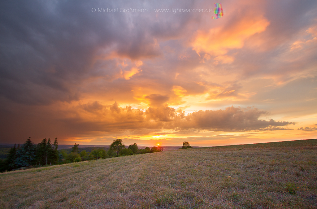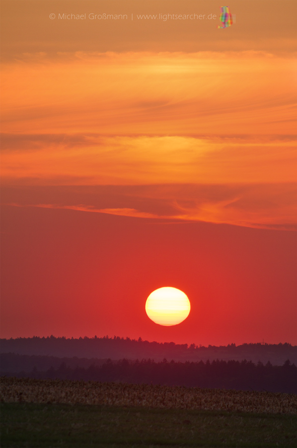 grünes Segment während der "rauchigen Phase" Mitte September, genauer der 12.09.... ...und der dazugehörige Sonnenuntergang... am 14.09. gab es dann diesen schönen Sonnenuntergang... am 22.09. entwickelte sich in schwüler Luft tatsächlich noch ein spätes Gewitter. Zuvor gab es ein nettes Abendrot... ...dann gab es einige schicke Blitze, dieser hier war mega... Viele Grüße