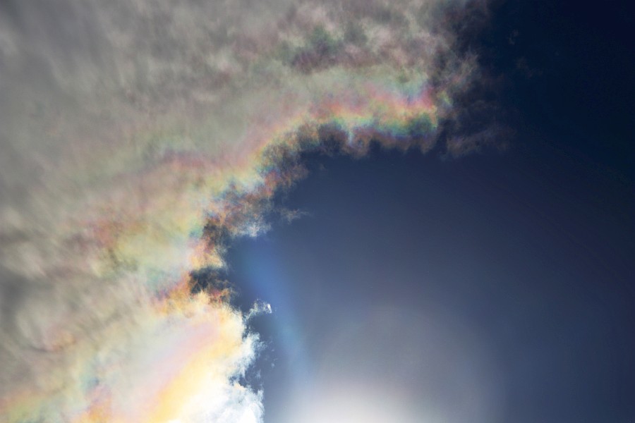 vorhin gab es hier in Berlin ein 22°-Halo und auf dem Foto ist nach Kontrastverstärkung auch noch eine Nebensonne zu sehen (Sonnenhöhe 36,5°): Vorher gab es längere Zeit einen Kranz um die Sonne: Ansonsten war der Himmel auch schön liniert, allerdings nicht vor der Sonne, wie bei Uwe: Viele Grüße