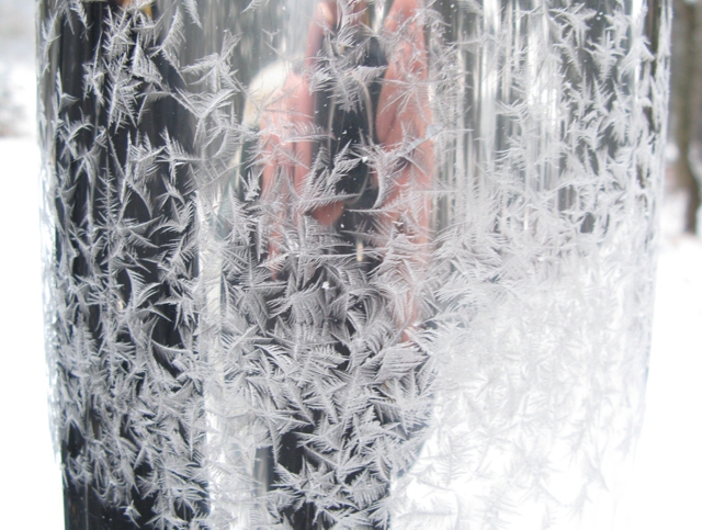 - "Eiswiurm", an einem Gerüstturm eingedrungenes Wasser trii aus einem kleinen Loch aus und gefriert sofrt