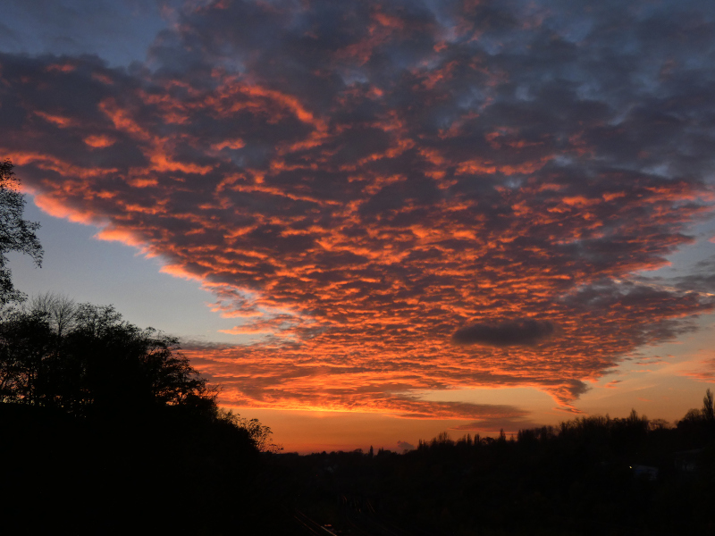 Gestern (5.11.) geb es hier in Bochum auch ein schönes Abendrot, sogar mit Lichtsäule: