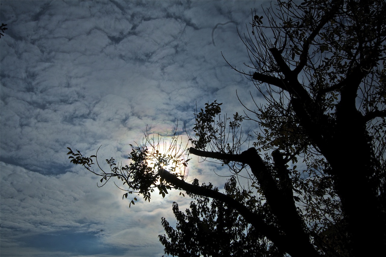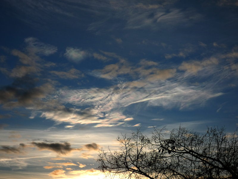 Heute Morgen war ich ziemlich erstaunt, dass ich in Altocumulus ein Regenbogenfragment entdeckte. Ich dachte erst an einen Wolkenbogen, aber als es sich auflöste, wurde sichtbar, dass das Fragment in Fallstreifen auftrat.