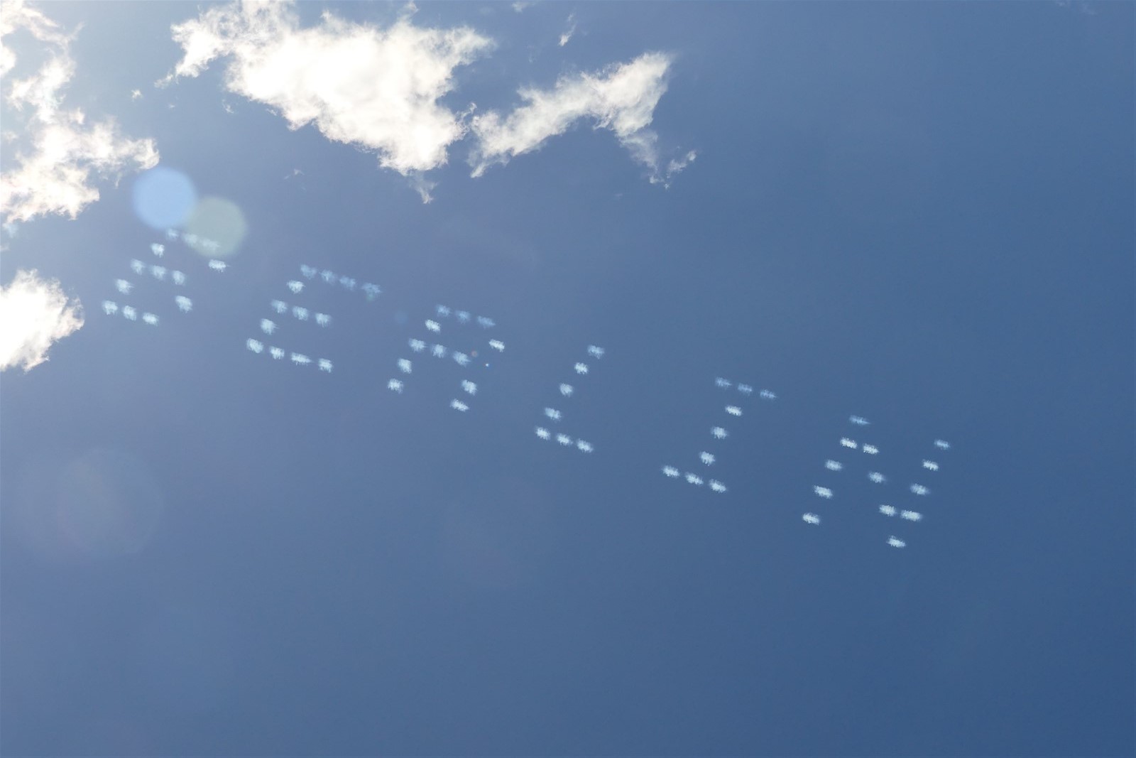 Vor ein paar Tagen gab es am Himmel über Berlin ein eigenartiges Brummen zu hören und dann auch noch was zu lesen - fünf Flugzeuge der Firma Skytexter haben Werbung für einen Streaming-TV-Kanal an den Himmel geschrieben. Ungefähr eine halbe Stunde lang tauchten die Flugzeuge immer wieder auf und "malten" die Werbung, schlossen letztendlich mit einem "Hallo Berlin".