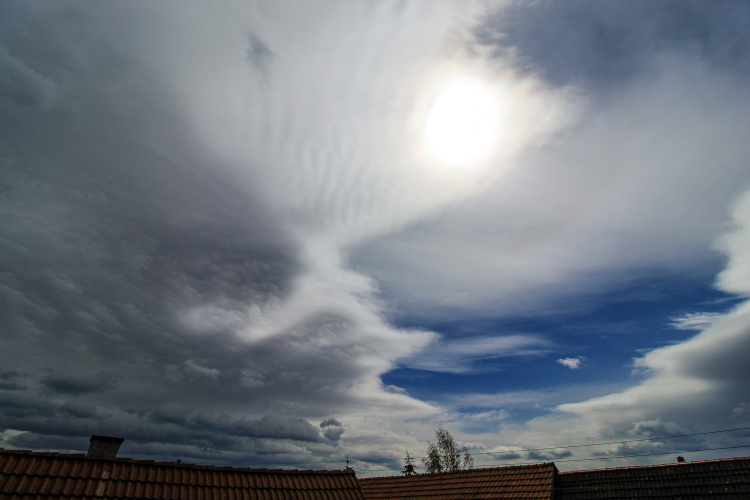 gestern am 04.Mai zeigte sich spätnachmittags ein Hauch von 22er bei der schon tief stehenden Sonne, gegen 19:35h bemerkte ich eine lachsrosa Reflektion leicht re über der Sonne. Heute soll sich eine erneute Kaltfront aus NW nähern. Das letzte Gedöns mit kaum Niederschlag aber viel Sturm im Gepäck brachte am Samstag gerade mal 5ml Niederschlag hier im Osten.