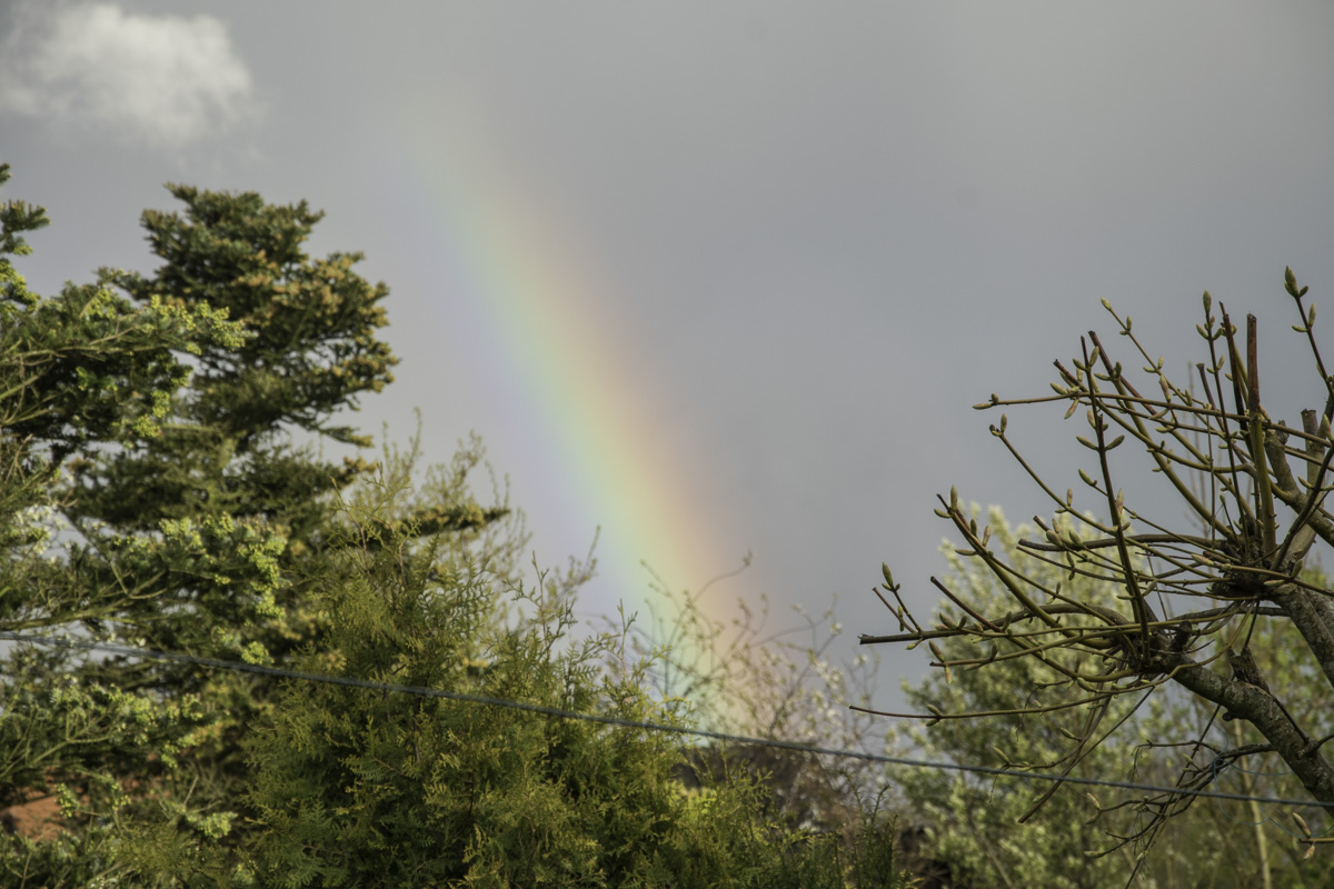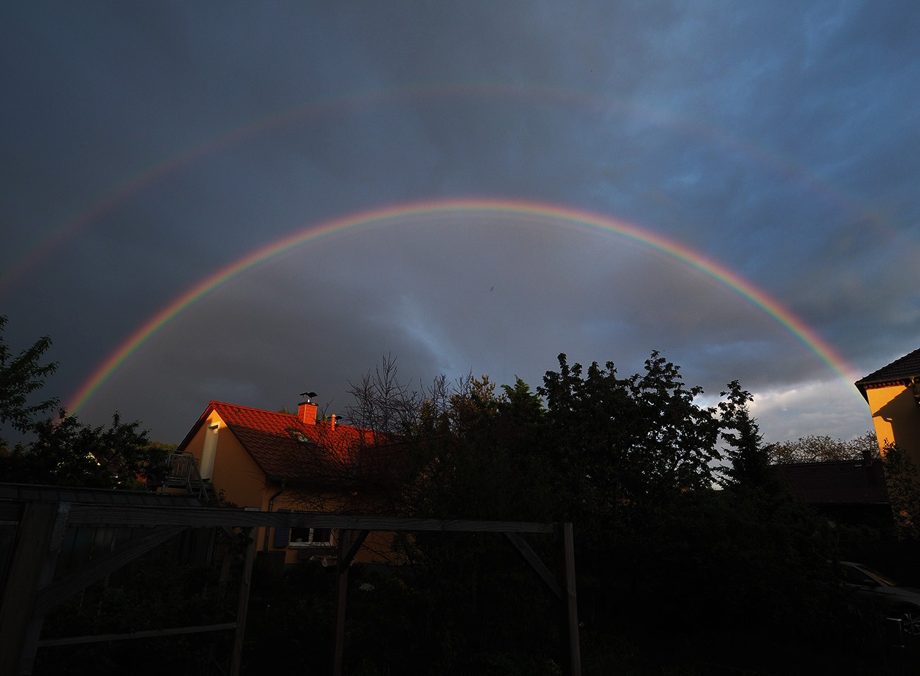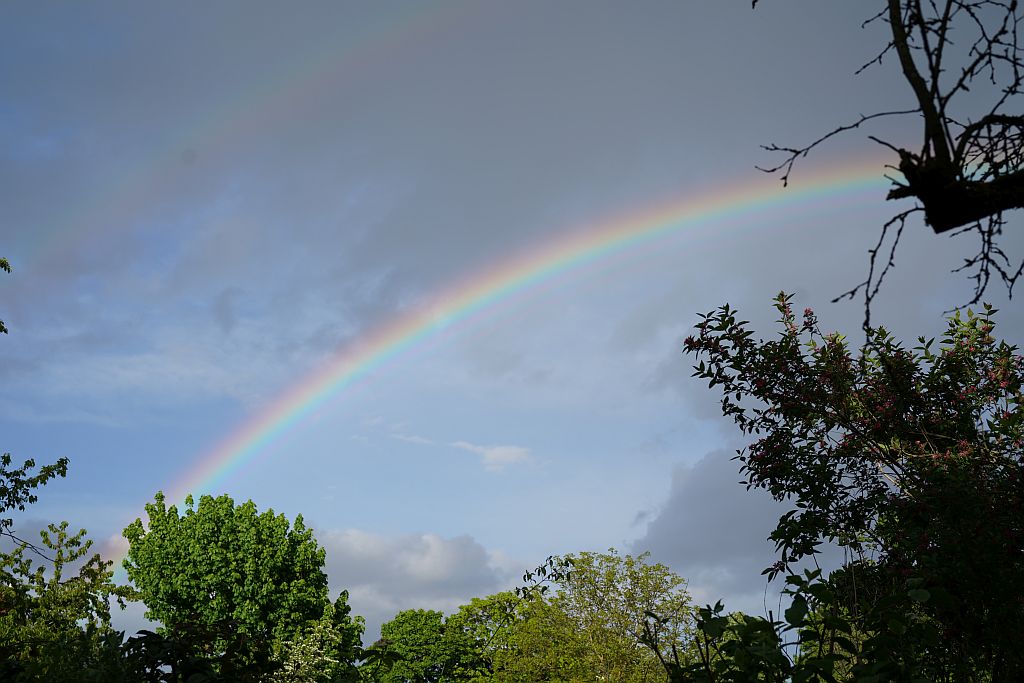 heute nachmittag war ich mit dem sony FE50mm makro im garten unterwegs, als nach einem kurzen schauer dieser regenbogen sichtbar wurde: