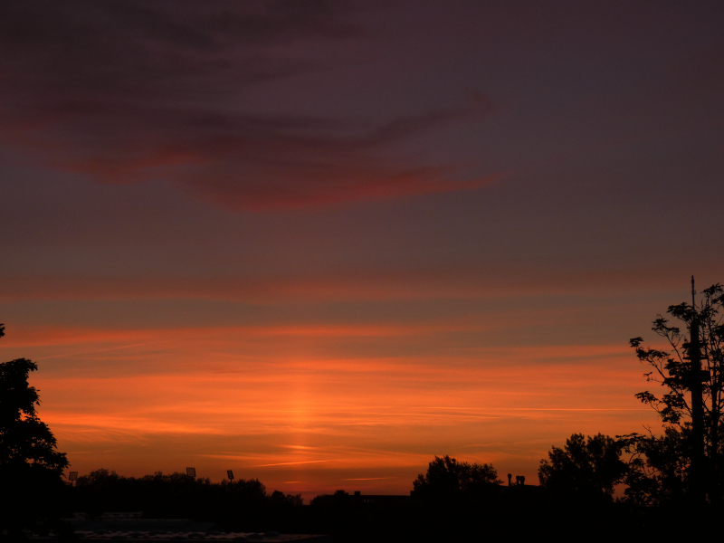In Bochum verabschiedete sich der gestrige Tag mit einer langen Lichtsäule. Sie erschien nach Sonnenuntergang kurz vor 22 Uhr Sommerzeit: