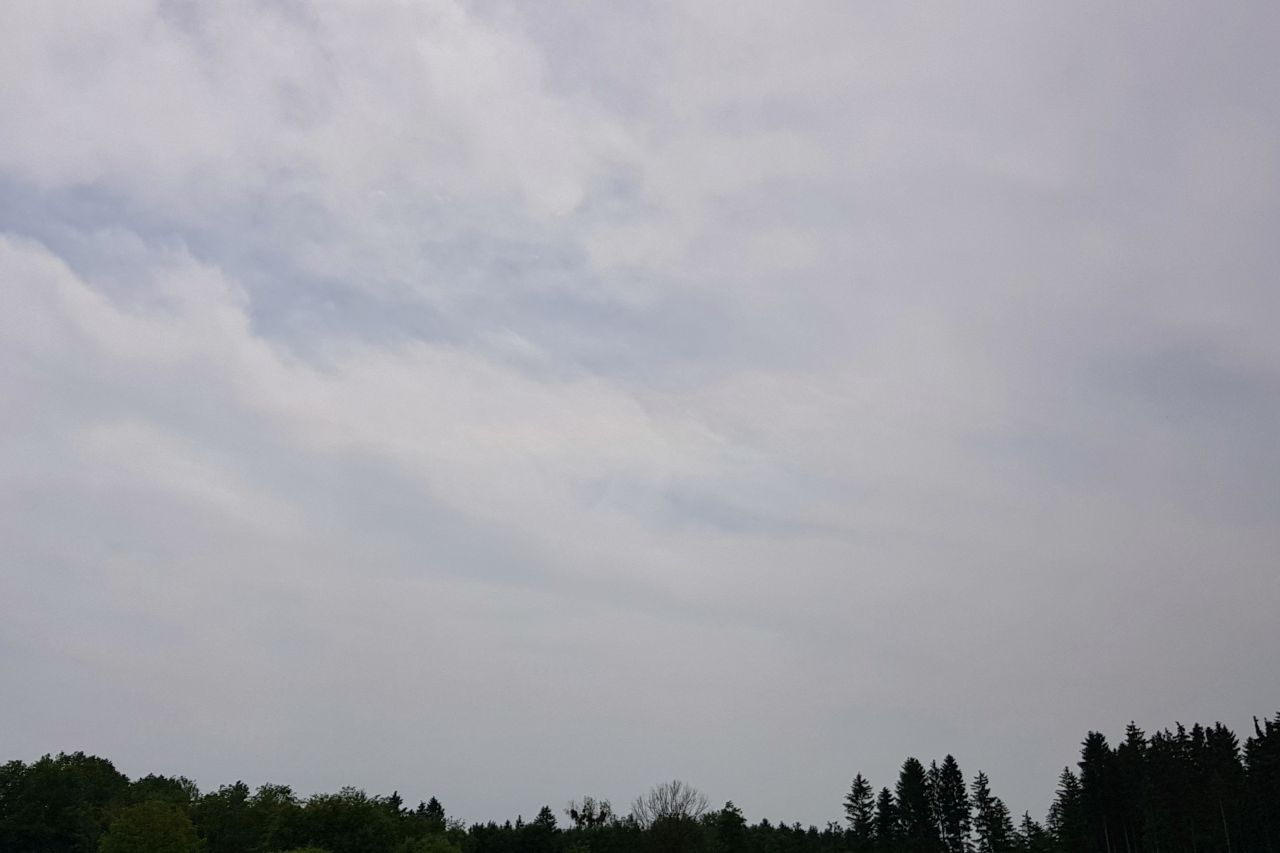 so wie in München zeigte sich auch im oberen Mühlviertel ein etwa 20° langes Stück des ZHB links unterhalb der Sonne. Ich konnte den Bogen zwar äußerst schwach frei sehen, gebe ihm aber trotzdem nur die Helligkeit 0. Die Sonne Stand um 12:41 MESZ (Zeitpunkt des Bildes) 64,33° hoch. Die Farbsättigung habe ich leicht angehoben. Erstsichtung um etwa 12:38 MESZ; länger als 10 Minuten war er bestimmt nicht zu beobachten.