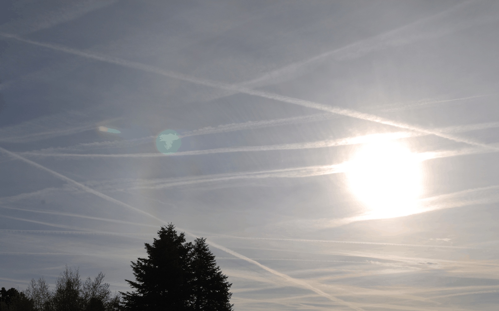 Auf den beigefügten Bildern erkennt man die Nebensonne gut. Jeweils rechts davon, etwa dort, wo am unteren Bildrand die Mitte zwischen den beiden Tannenspitzen ist, ist eine schwache, längliche Aufhellung zu erkennen. Zusammen mit der Nebensonne bilden sie grob den Buchstaben "O", der aber unten und oben nicht geschlossen ist. Leider kommt der mutmaßliche 18-Grad-Halo auf den Bildern hier im Forum nicht so gut rüber. Mit dem bloßen Auge war er besser zu erkennen.