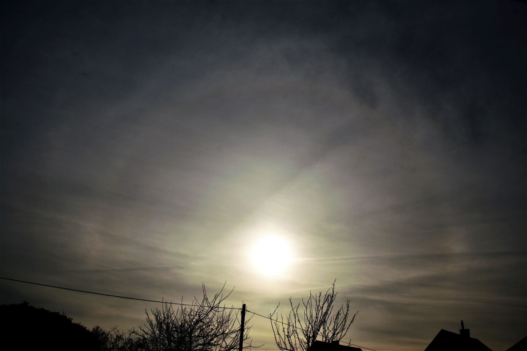 Gestern zeigte sich am frühen Nachmittag ein hauchdünner 22er, den ich visuell gerade noch so an einer immer dichter werdenden Altostratus-Decke wahrnehmen konnte. Es kündigte wohl die Kaltfront aus West an, die uns heute über 65Km/h Boen reinhaut.
