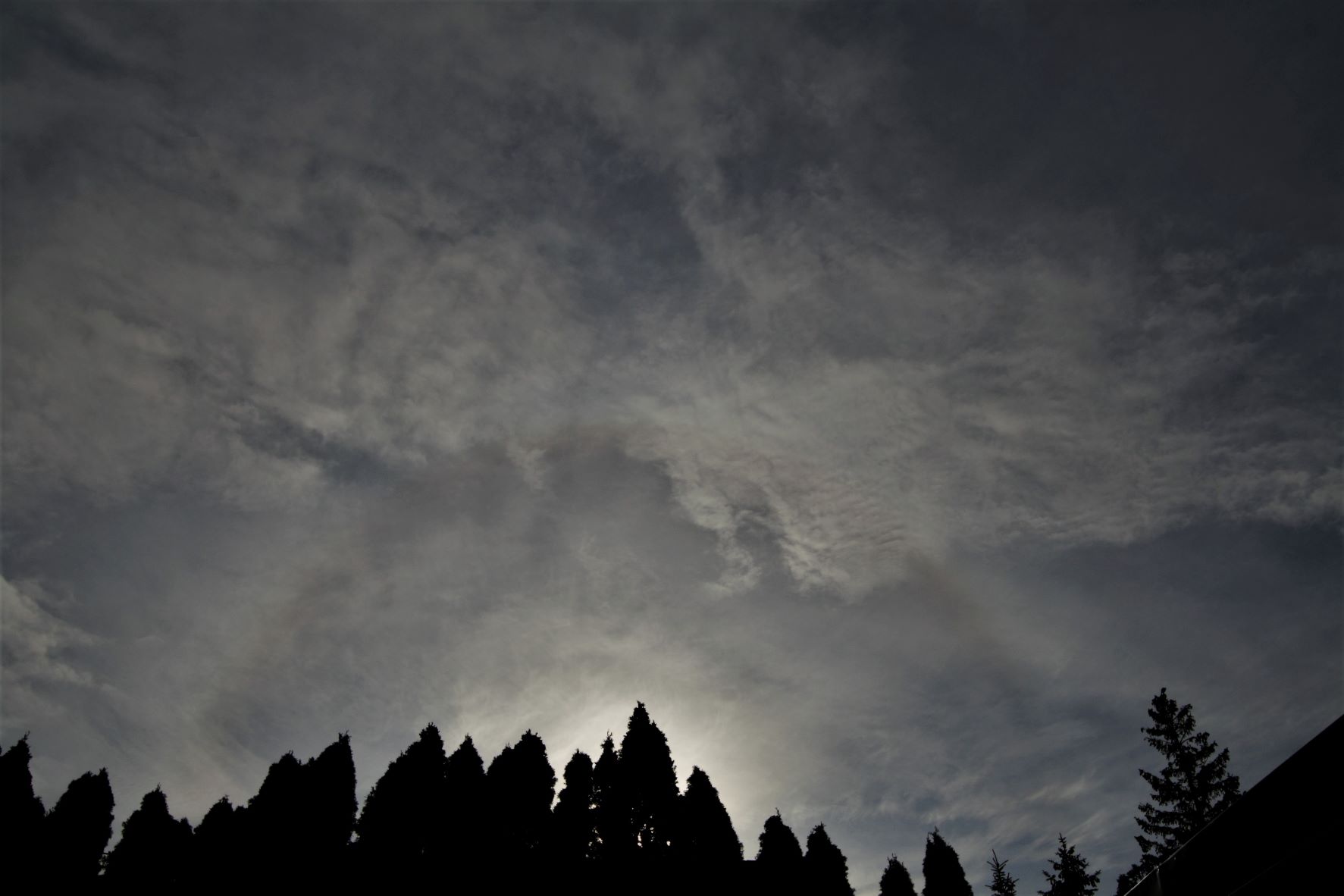 Hier kündigt wohl ein 22er Halo den bevorstehenden Sturm und Wetterwechsel an. Heute Vormittag gegen 09.00 Uhr zeigte es sich sehr flüchtig, bevor sich die Wolken gänzlich verdichteten.