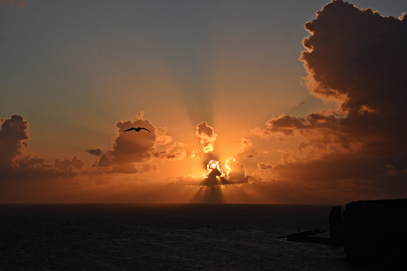 Zum gestrigen Sonnenuntergang gab's über und unter der Sonne Schattenstrahlen.