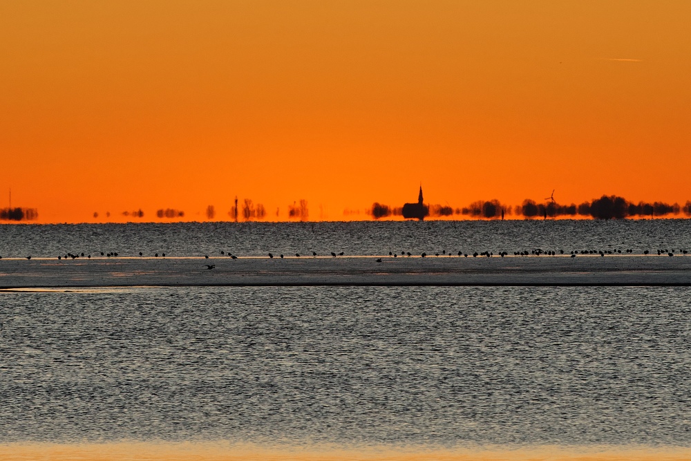 Daraus ist dann ein Sonnenuntergang mit Luftspiegelung und wenn ich nichts fasch gemacht habe auch noch eine Sonnenhalo daraus geworden.