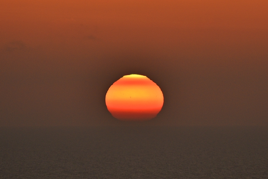 Nach einem schwülen, warmen, überwiegend bedeckten Tag gab es einen farbenfrohen Sonnenuntergang über Helgoland.
