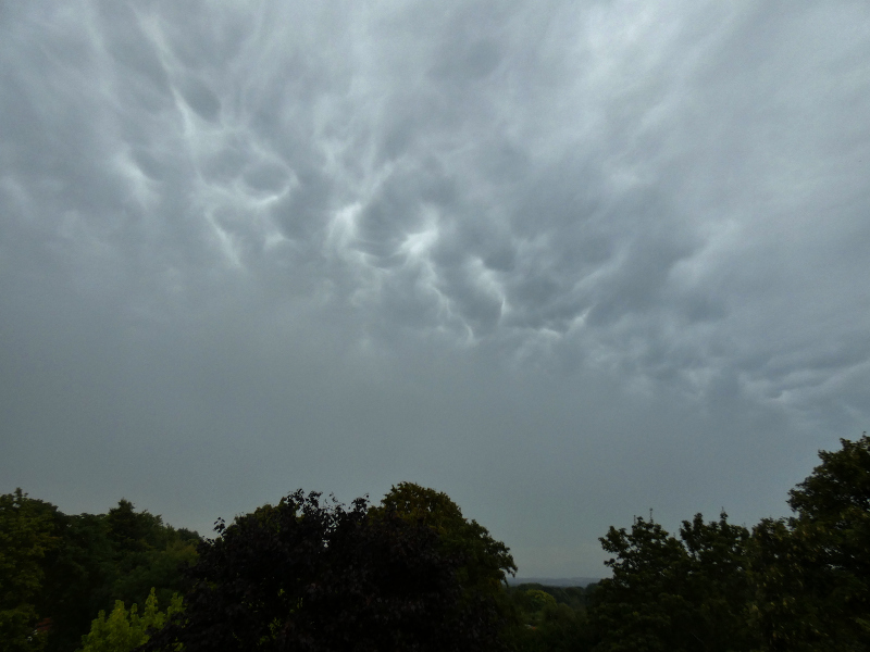 Die schwache Kaltfront von gestern hatte tatsächlich ein paar Mammatus-Wolken dabei: