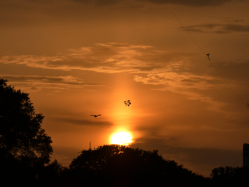 ich war gestern beim Drachenfest in Lünen. Dort zeigte sich bei Sonnenuntergang eine Lichtsäule: