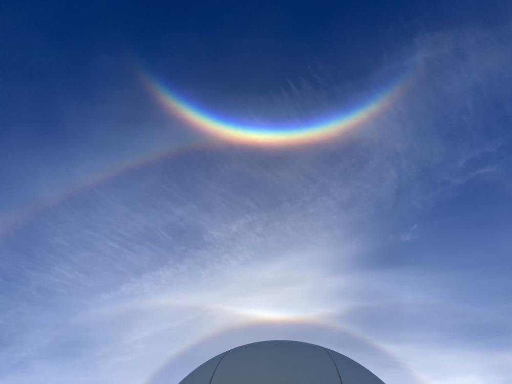 Die am besten definierten und mit die hellsten Halos, die ich bisher überhaupt gesehen habe. Viele ungläubige Blicke gingen gen Himmel und einige fragten sich (und danach mich), wieso es Regenbögen bei klarem Himmel geben kann. :)