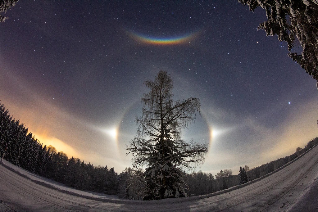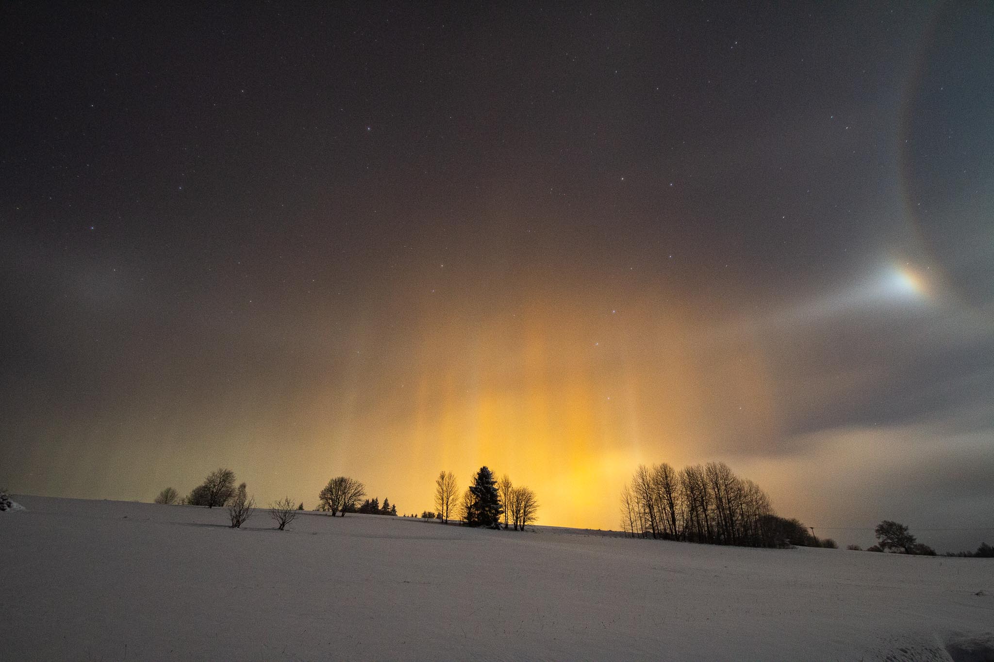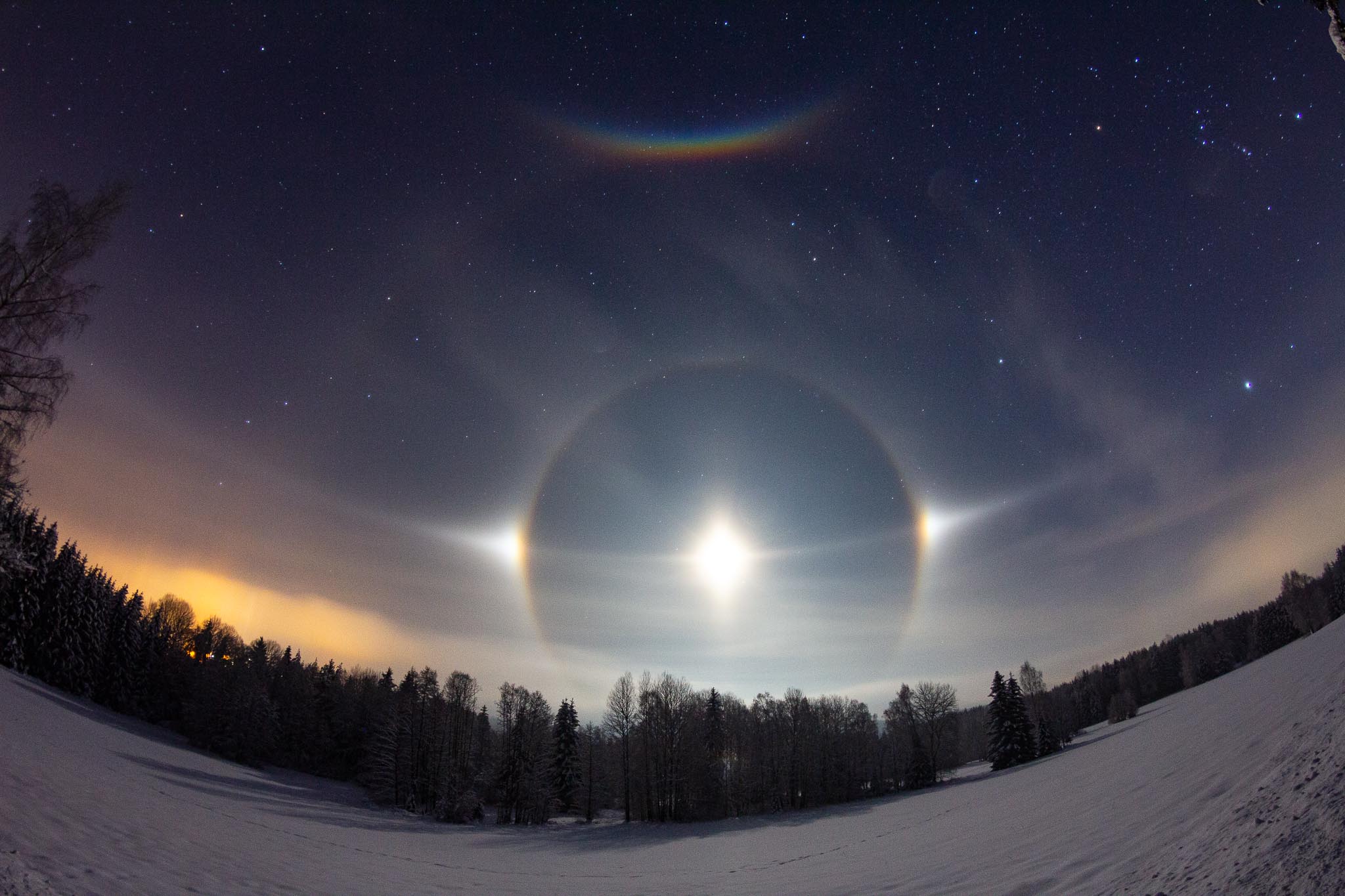 Mir gefällt u.a. auch der homogene Nebensonnenkreis mit den Wintersternen und Lampenlichtsäulen (bräuchtest nur noch ein Vollkreis-Fisheye).