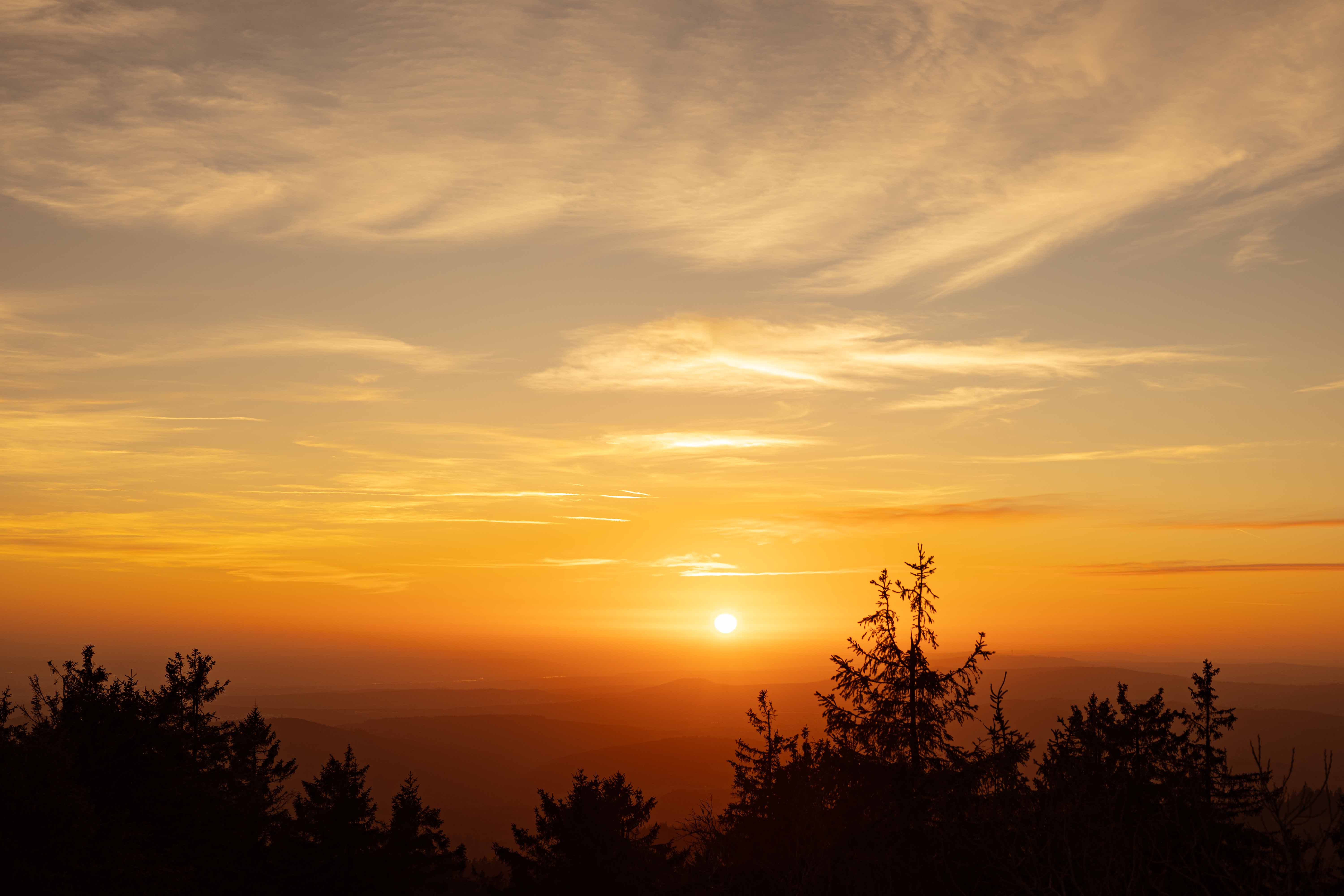 dann poste ich auch mal ein paar Bilder von gestern. Ich selbst war auf dem Taunus unterwegs, um genau zu sein beim Taunus Observatorium auf dem kleinen Feldberg. Von dort aus konnte ich den Sonnenuntergang beobachten, wo teilweise intensive Farben mit dabei waren. Danach fingen dann die hohen Cirren an in rot-violett zu leuchten: Selbst eine Stunde nach Sonnenuntergang blieb ein heller orangener Streifen am Horizont übrig und auch die hohen Eiswolken leuchteten noch weiter in violett: