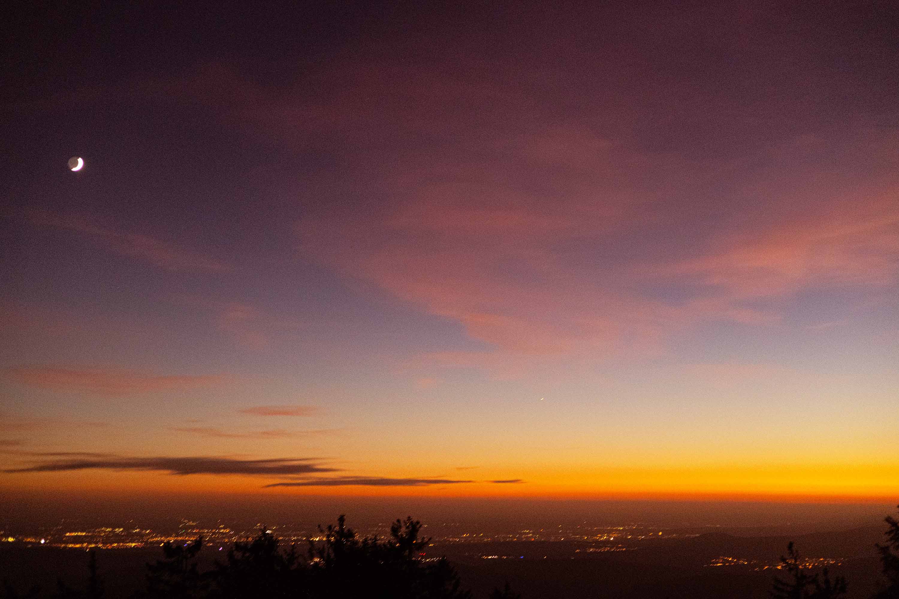 Erst als die Sonne 13° unter dem Horizont stand verschwand das Lila.