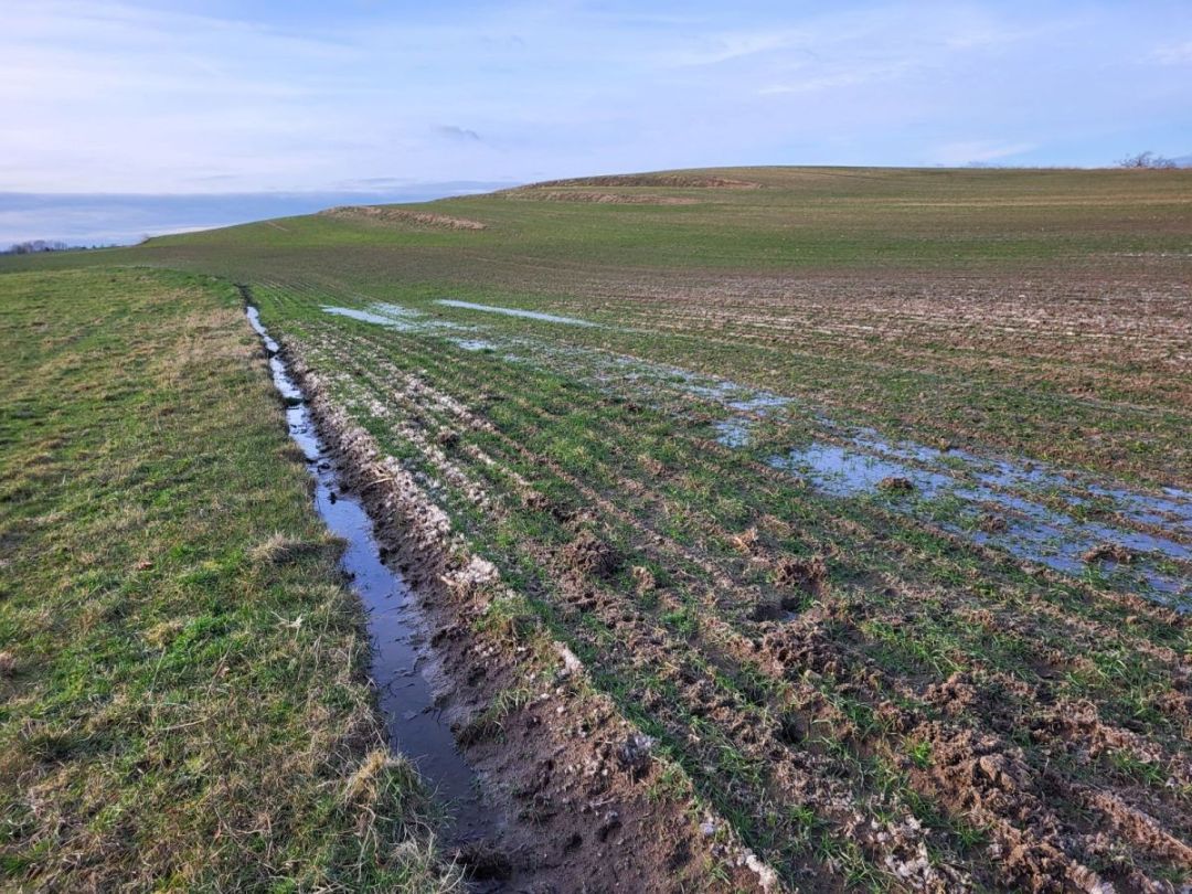 Auf dem Feld stand noch viel Wasser nach der sehr regenreichen Zeit zum Jahreswechsel.