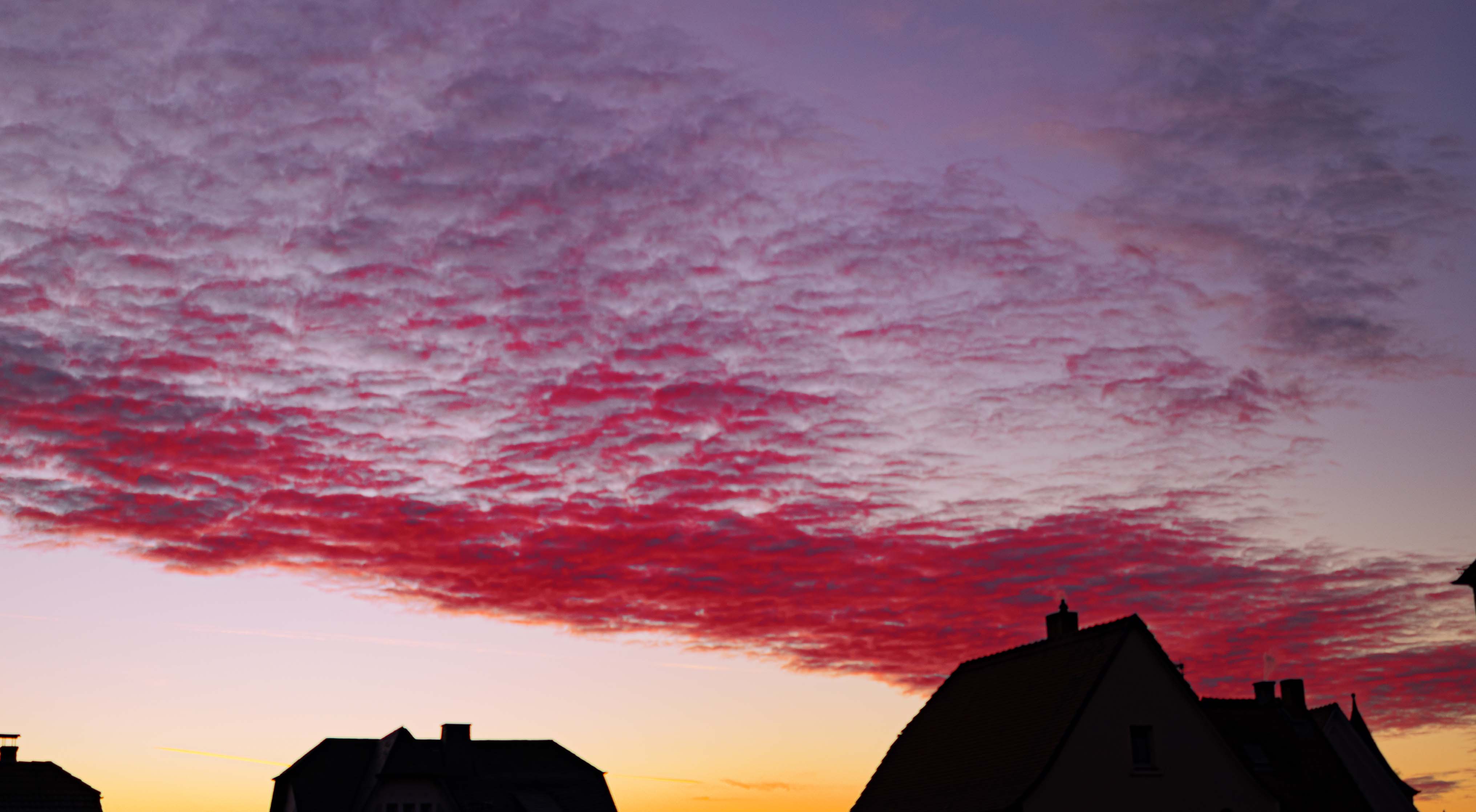 Abendrot an Altocumulus heute Abend in Kirchhain, teils auch etwas kräftiger:
