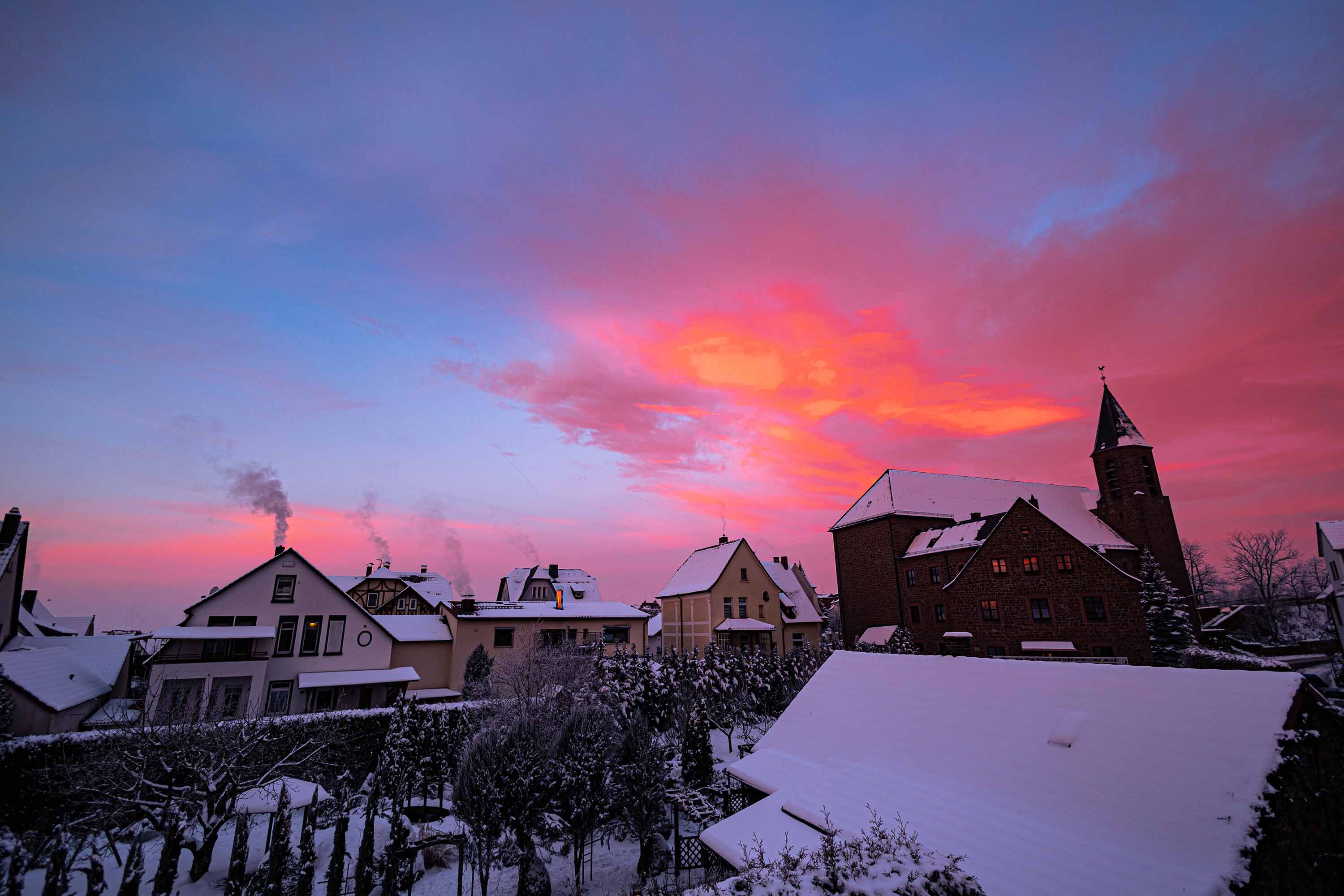 Heute gab es ein Morgenrot über dem (noch) verschneiten Ruhrgebiet:
