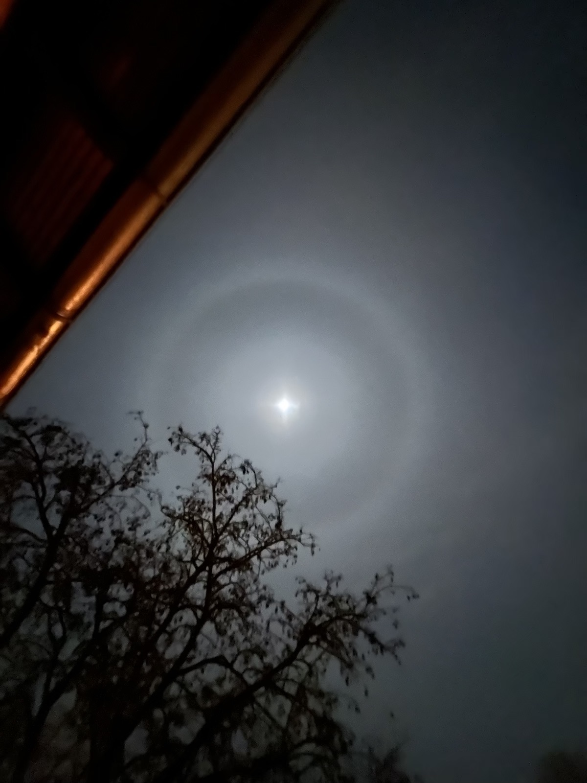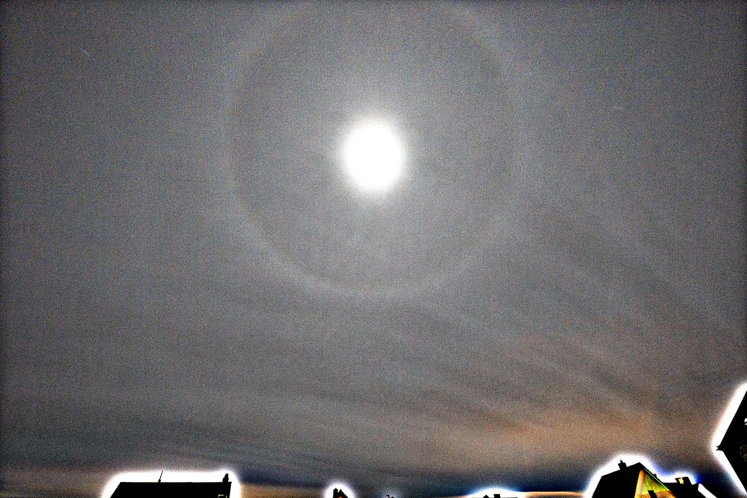 dann füge ich mal meine Beobachtung hinzu. Überwiegend handelte es sich ja nur um den 22°-Ring. Ein wenig umschriebener Halo im unteren Bereich konnte ich aber auch mal zu Beginn festhalten: Im Gegensatz zu euch war hier alles nur sehr schwach, ich konnte aber auch erst gegen 22:30 Uhr beobachten. Davor habe ich dann alles verpasst, wobei es hier trotzdem sehr schwierig mit dem Beobachten war, da sehr viel tiefes Gewölk durchzog. Das ist hier generell zu dieser Jahreszeit ein Problem, da die Grundschicht nicht wirklich austrocknen will.