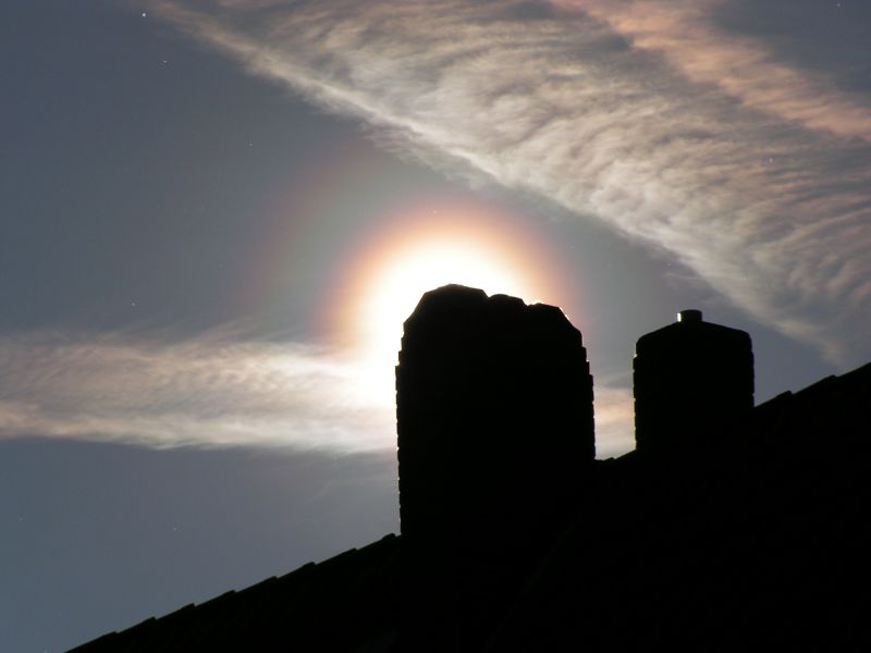Bild 1, Korona in Kondensstreifen-"Cirrus":