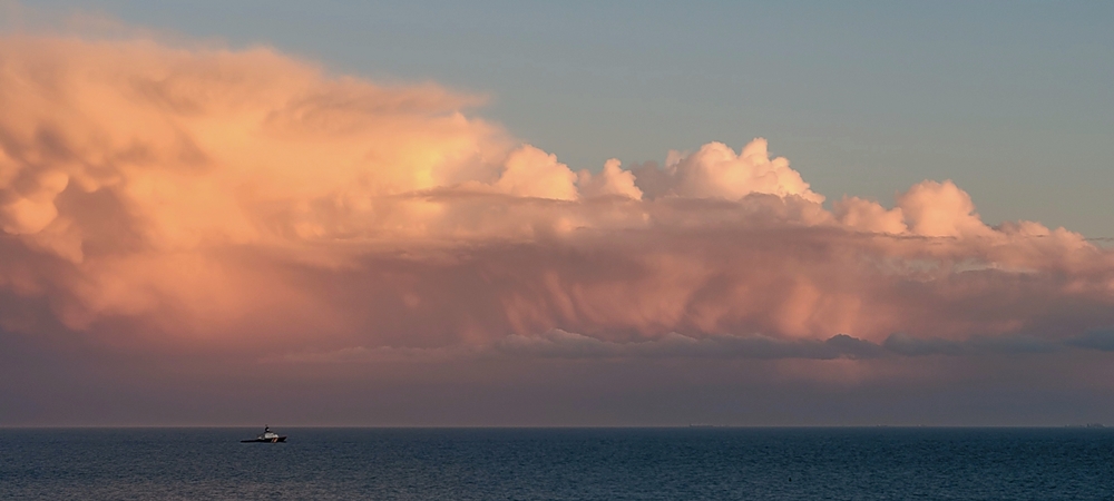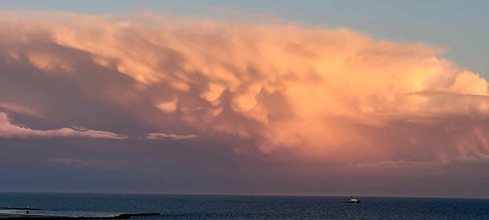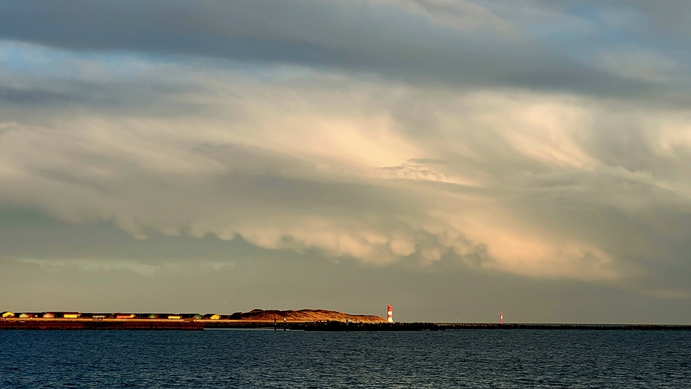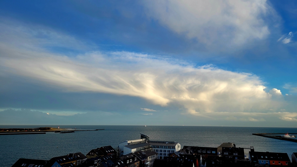 Eine Schauerzelle heute Nachmittag im Süden von Helgoland (leider hatte ich nur das Handy dabei).