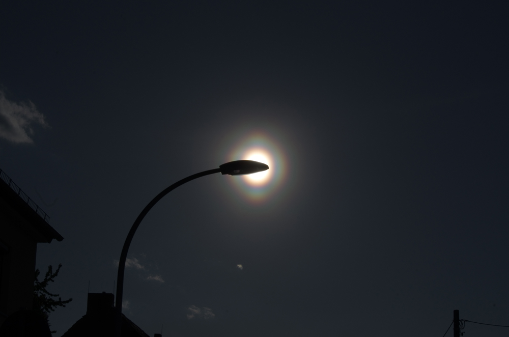 Eine Freundin nahe Landshut in Bayern, mit der ich gerade telefonierte, sah sie dann auch, ihr Erstling einer Pollenkorona.