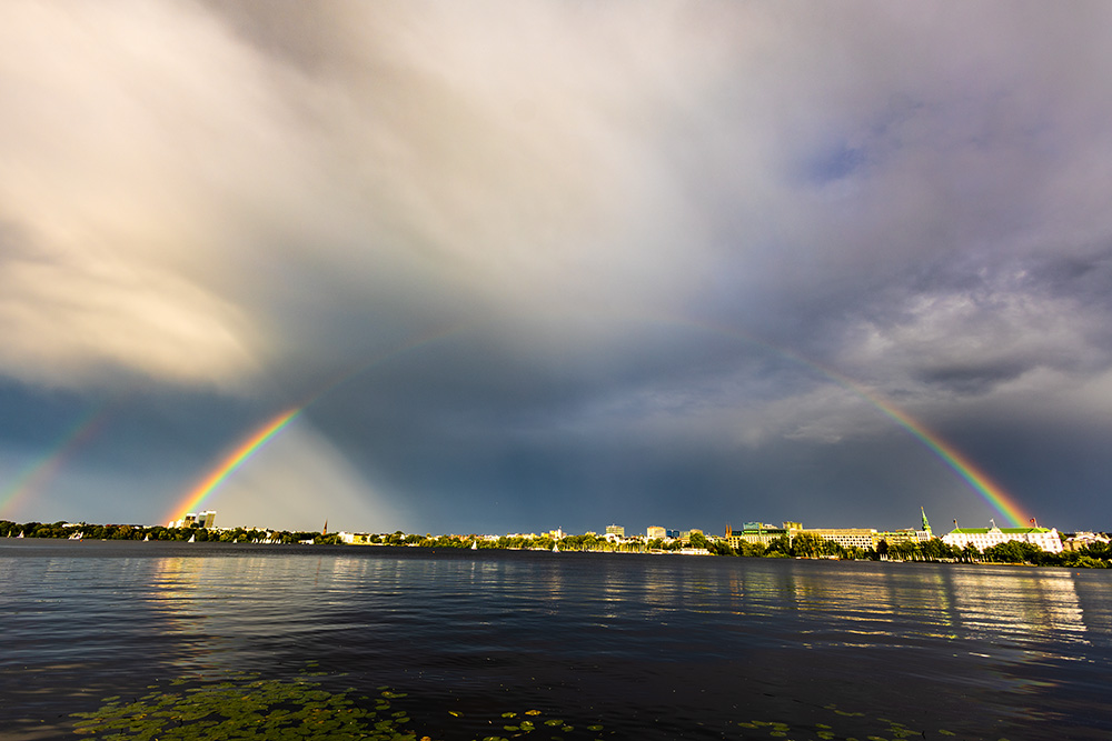 Und heute (5.8.) gab es dann einen intensiven doppelten Regenbogen: