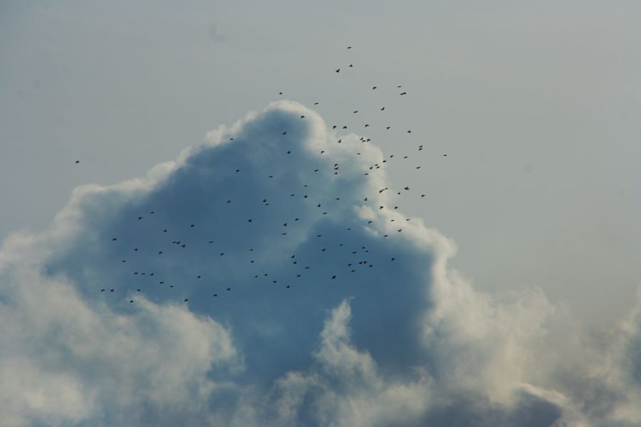 heute Nachmittag als ich die Nebensonnen aufnahm, zog ein Schwarm Vögel gen Südwesten. (Stare, Drosseln ... ?)