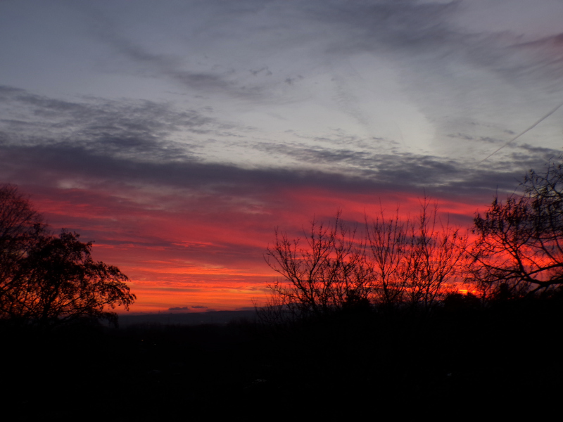 Heute gab es über dem Ruhrgebiet ein tolles Morgenrot. Schon um 8 Uhr, eine halbe Stunde vor Sonnenaufgang, war zu erkennen, dass da was kommt: