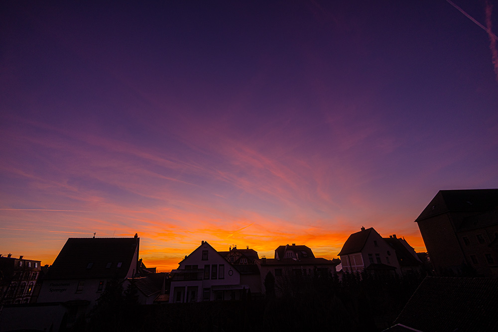 Heute (19.12.) gab es ein Morgenrot in Kirchhain. Das fing schon sehr früh an um kurz nach 7 Uhr bei einem Sonnenstand von 11°-10° unter dem Horizont:
