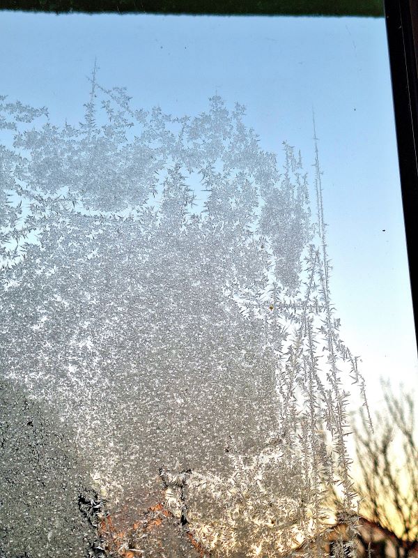 Nachdem ich Anettes wunderschöne Fotos gesehen hatte, schlief ich ein. Ich träumte von Schnee und Eisblumen. Ich wachte auf und rannte zum Fenster, um zu sehen, ob ich geträumt hatte oder nicht. Draußen war der Himmel klar und wolkenlos. Heute sind es bei mir 17 Grad Celsius.
