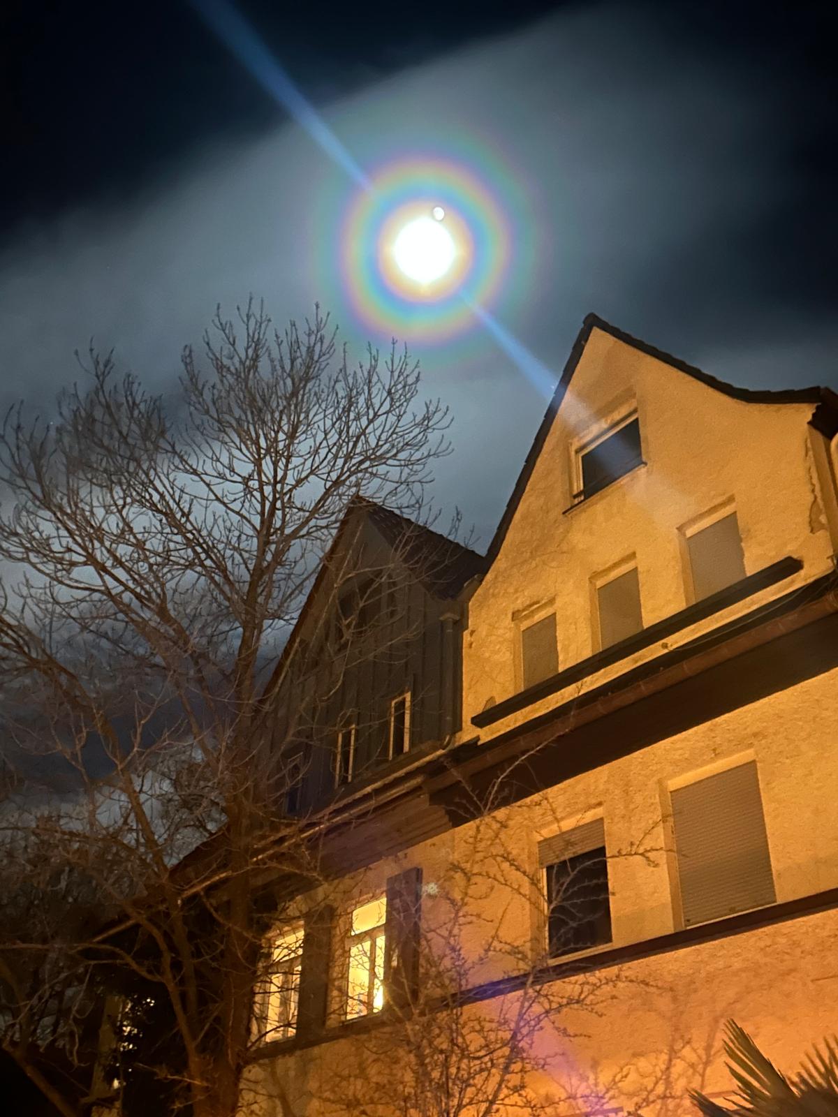 So, die vermutlich letzten atmosphärischen Erscheinungen in Kirchhain: am Abend gab es am Mond einen schönen Kranz: