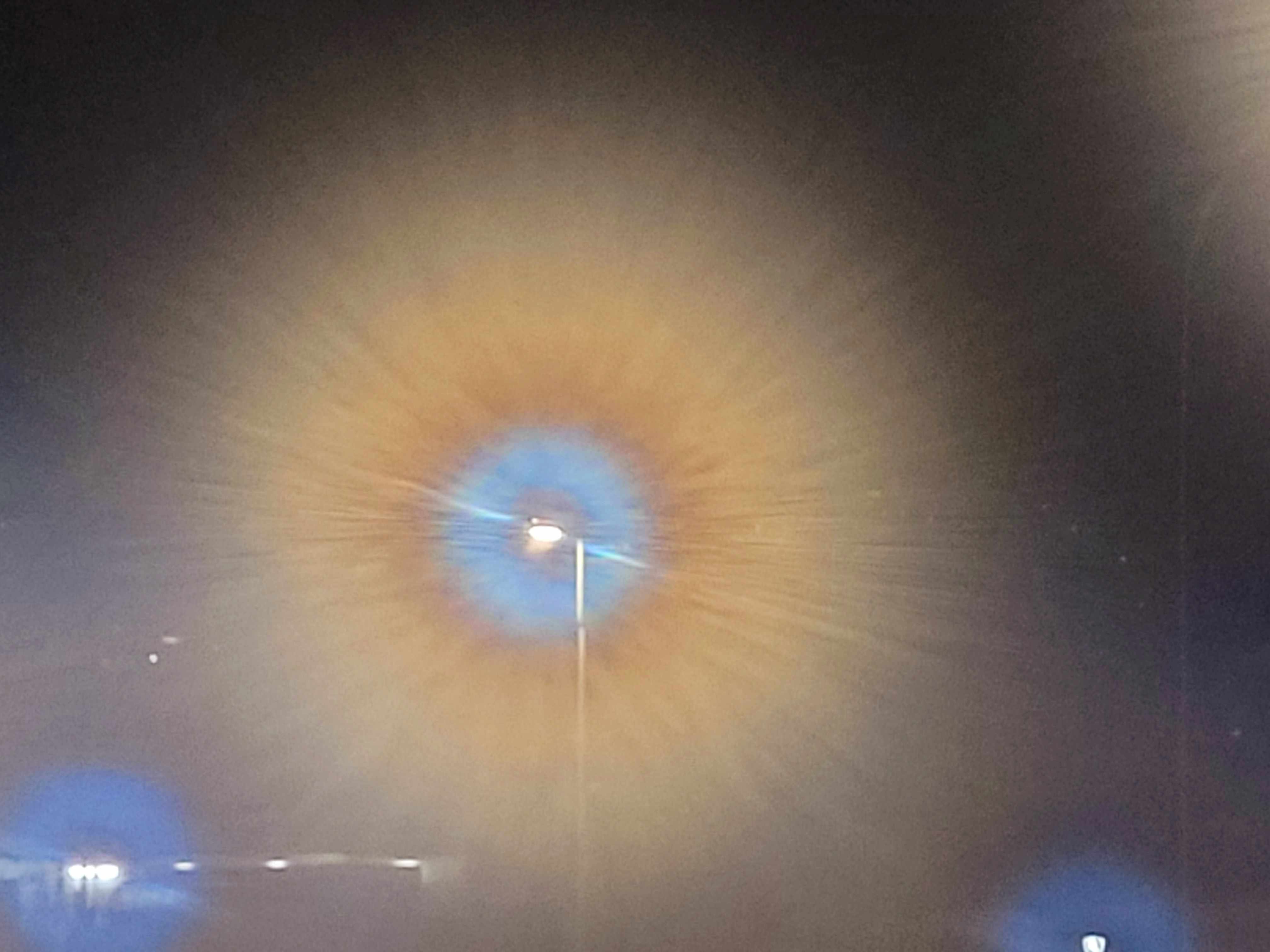 Letzte Nacht habe ich eine Krone um einen Lichtmast herum beobachtet. Die Beobachtung erfolgte durch ein beschlagenes Fenster. Solche Erscheinungen sind im Winter recht häufig, wobei die Muster je nach Größe und Dichte der Wassertropfen unterschiedlich ausfallen. Manche Kronen sind wahre Kunstwerke, wenn der Beobachter die Geduld aufbringt, spektakuläre Muster einzufangen und die Fotos professionell zu bearbeiten. Campania, Italy. 01.01.2026- 22.00.