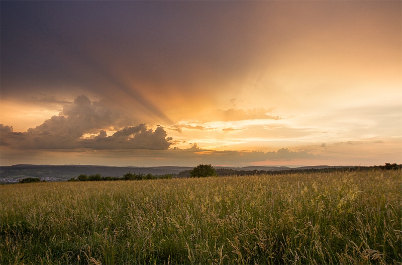 Ich war gestern Abend/Nacht ein wenig unterwegs - eigentlich, um die linienförmig angeordneten Gewitter zu fotografieren, welche vom Harz (über Hannover) gen Nord-West zogen. Diese lösten sich allerdings während der Dämmerung recht schnell auf - wie erwartet, aber man lässt eben nichts unversucht. Der Sonneuntergang war in dieser drückenden, feuchten Luft wirklich besonders. Unten, am Rande der norddeutschen Tiefebene, sieht man bereits, "wie der gestrige Taupunkt" für ordentlich Dunst sorgt: