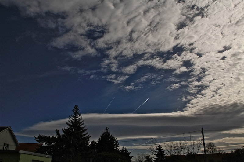 heute gab's mal wieder einen extremen Befall von Cirrus homogenitus. Ich find's bedenklich, wenn man am Boden über die Treibhausgasemissionen redet, aber zeitgleich Mio. Tonnen von dem Zeugs in die "richtige" Höhe bringt