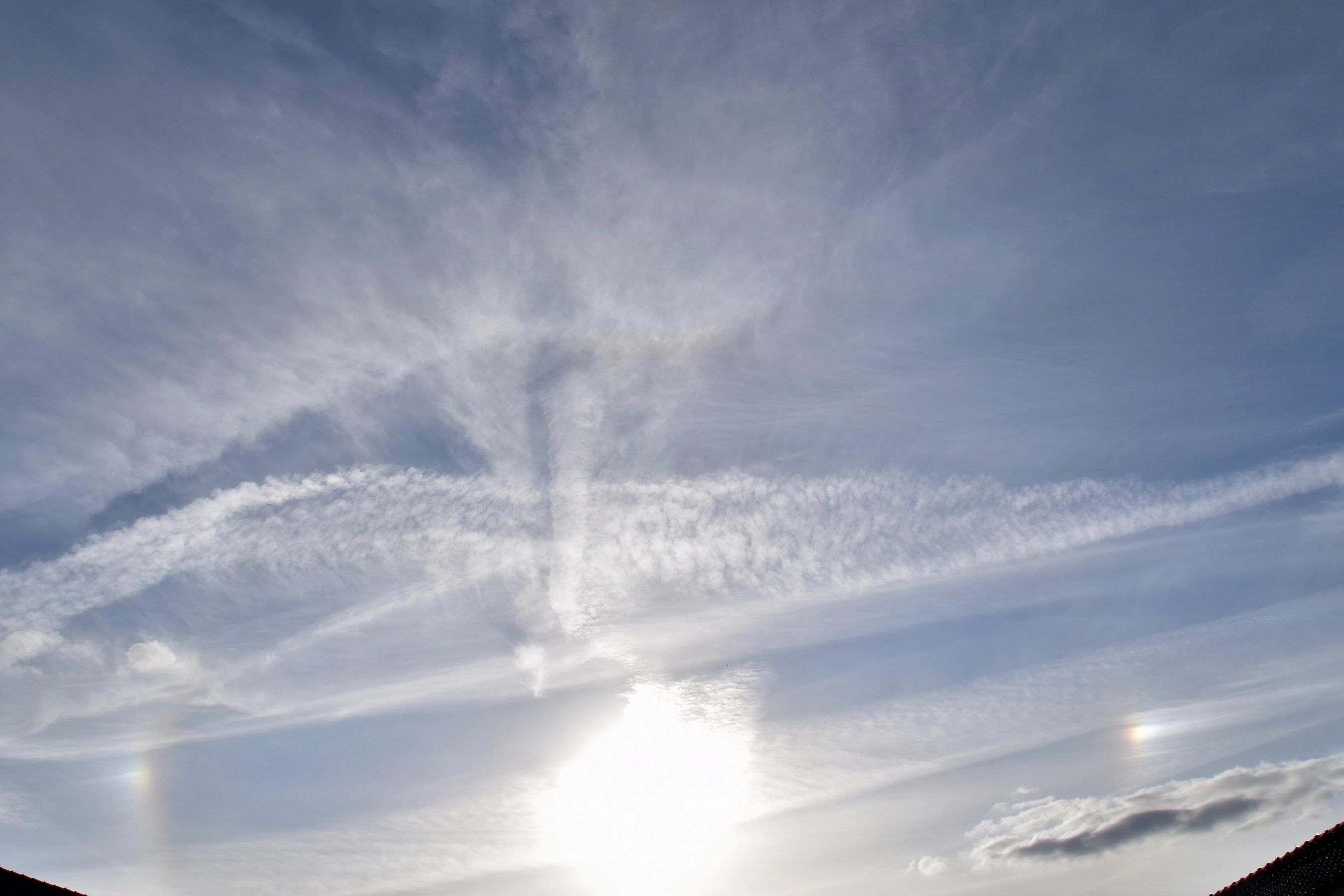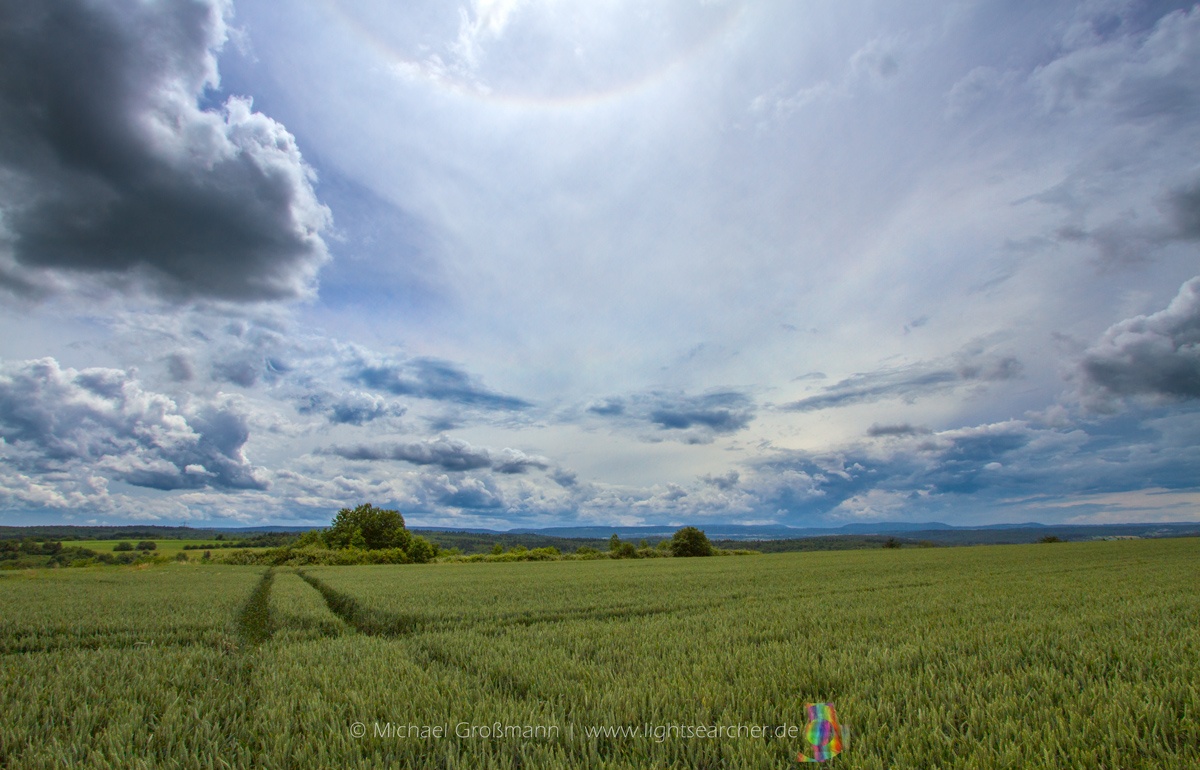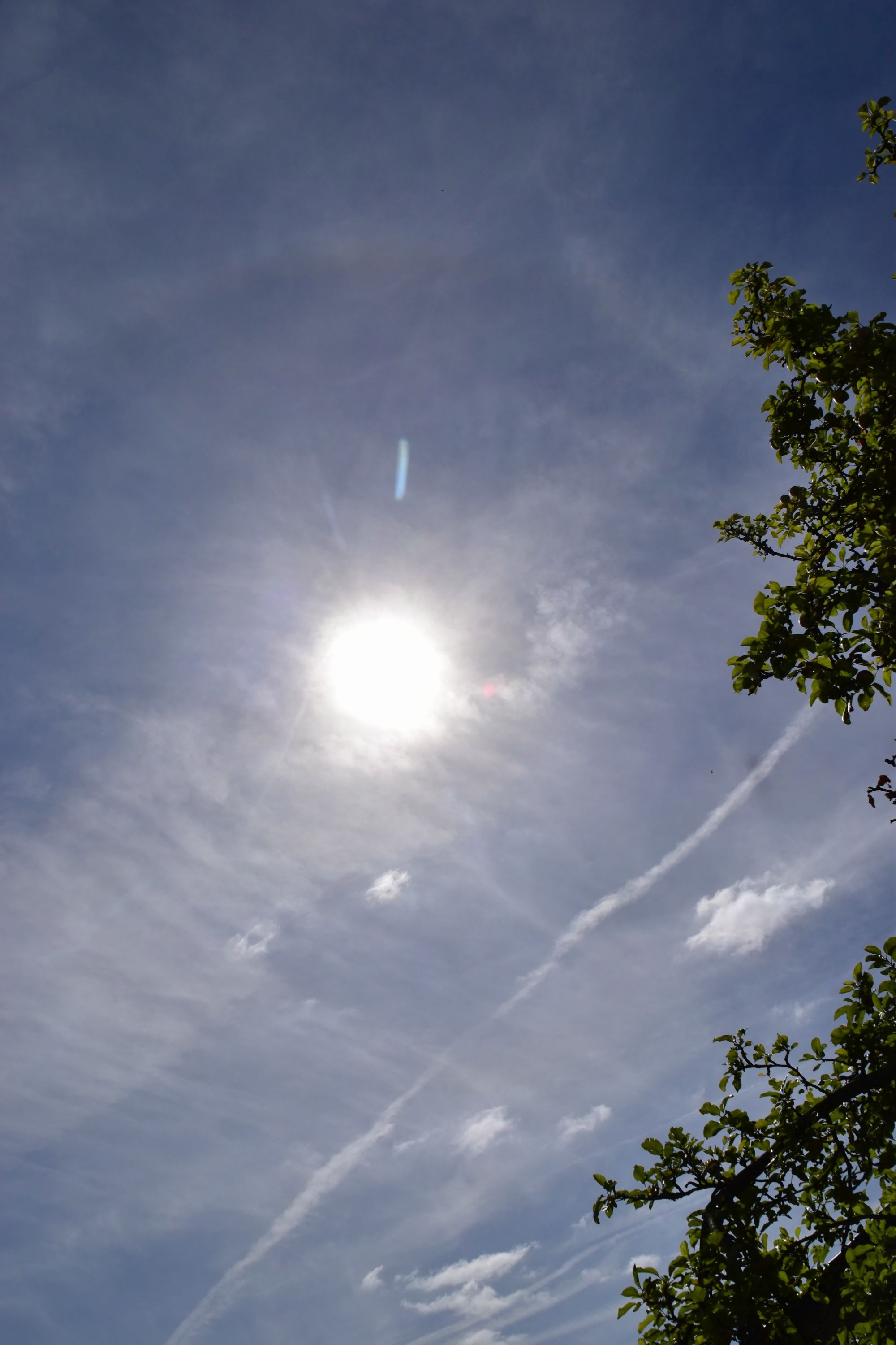 Ich muss das jetzt einmal los werden. Den ganzen Tag hat mich der Himmel mit seinem Wolkenspiel beschäftigt. Die Bilder haben mich wirklich begeistert.Ich möchte sie hier einmal zeigen. Womit ich überhaupt nichts anfangen kann, ist der scheinbare Regenbogen oberhalb des Halobogens.Schöne Grüße aus dem Ostwestfälischen.