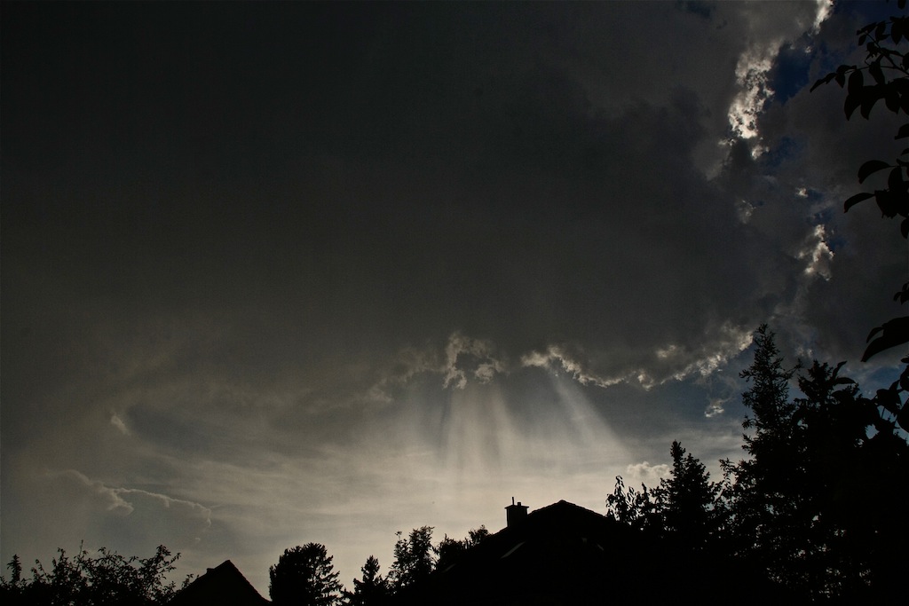 Am späten Nachmittag zeigten sich intensive Dunststrahlen als Vorboten der Labilisierung.