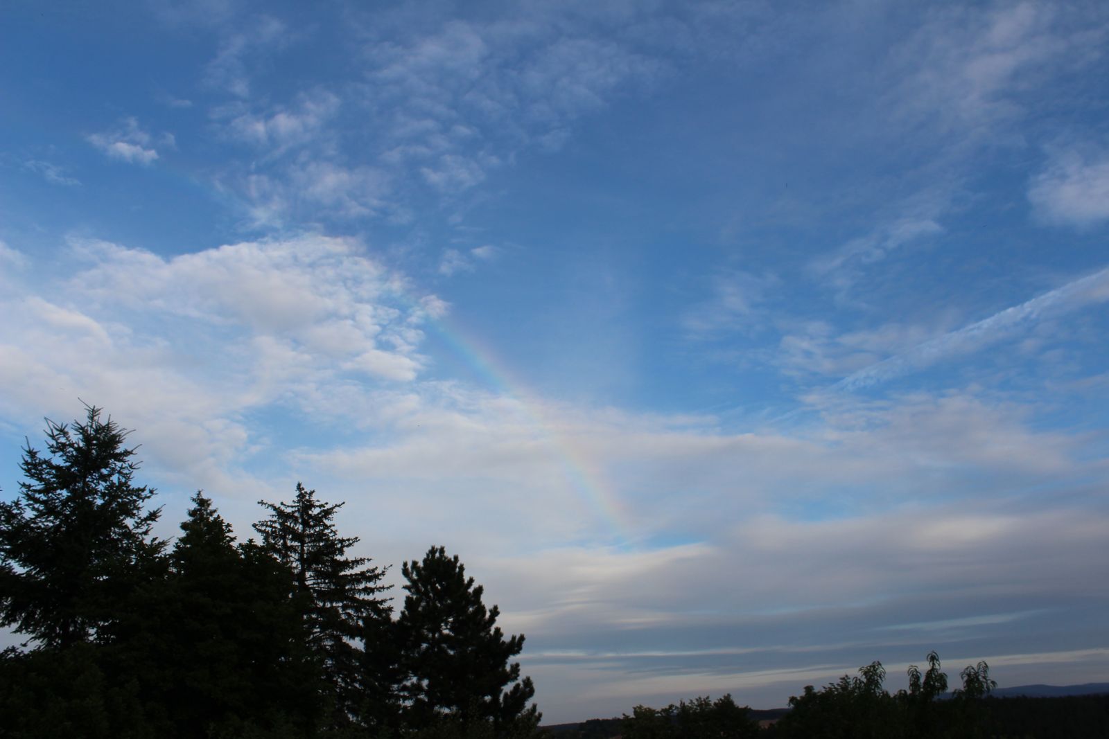 am 22. gab es einen Regenbogen, obwohl keine regenträchtigen Wolken in Sicht waren. Neben Cirren waren nur ein paar dünne Acs am Himmel und trotzdem bildete sich ein Regenbogen, der anfangs mehr als 90° groß war. Am 27. ein großer Cb über dem Osterzgebirge mit mehrfachem Pileus, der aber schnell durchbrochen wurde.