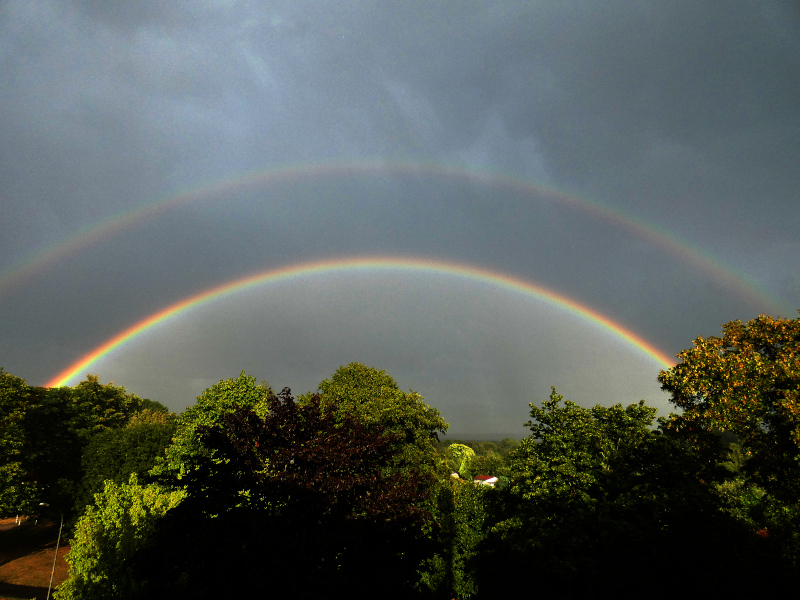 Auf den letzten Drücker lieferte der Juli noch einen hellen doppelten Regenbogen ab: