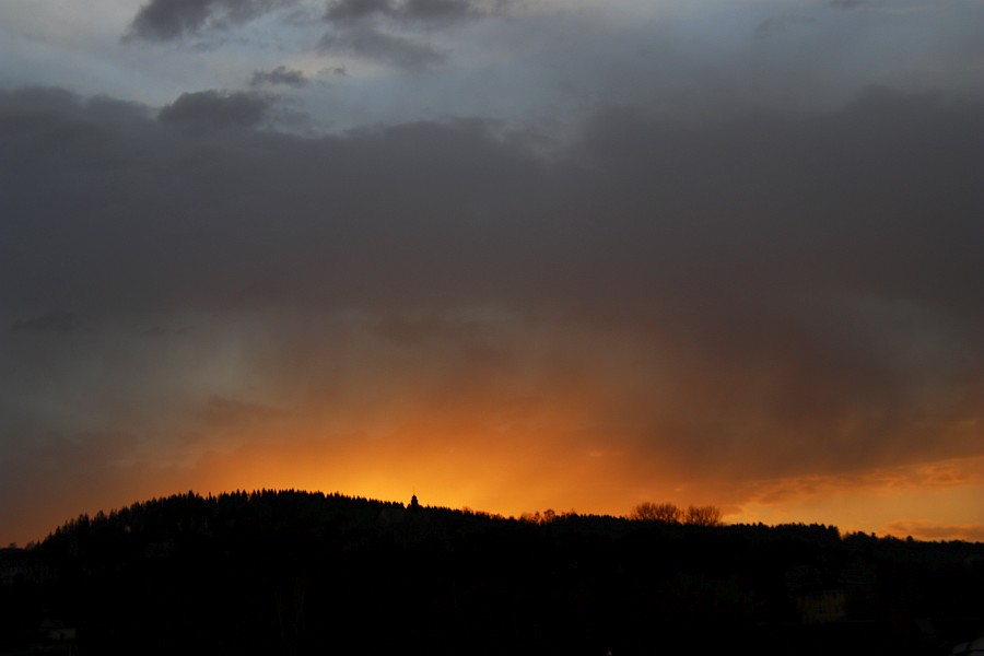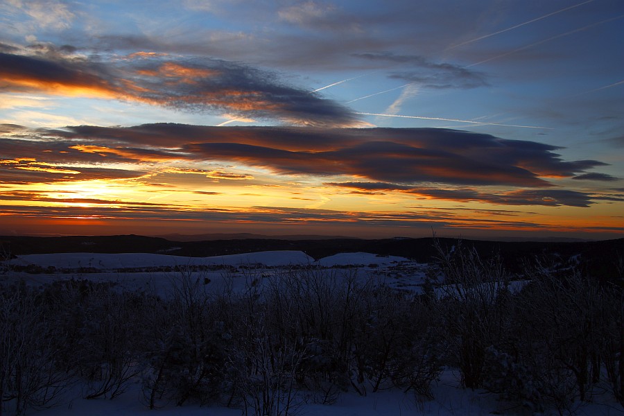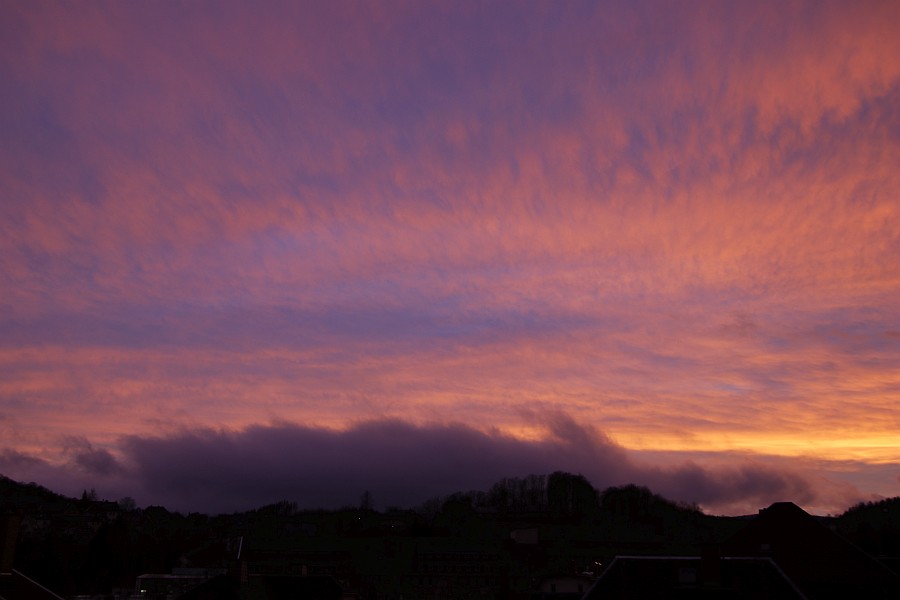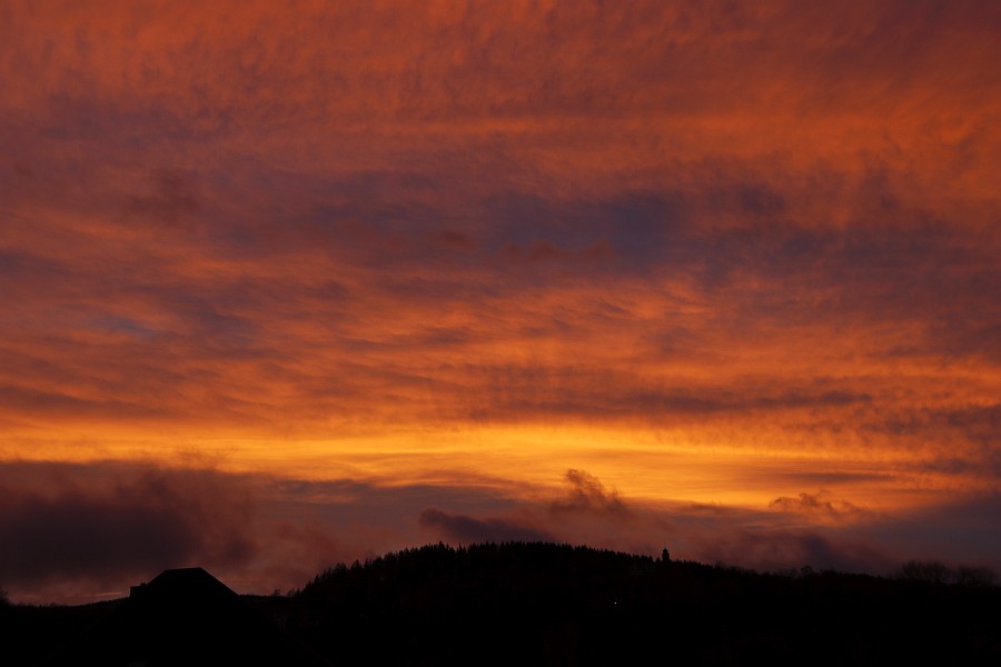 Heute waren wir wieder dran, das Abendrot scheint aber ziemlich kleinräumig hier in Schwarzenberg in einem Föhnloch aufgetreten zu sein. Über dem Kamm lagen tiefe Wolken, die immer mal helmholtzig verwirbelten.