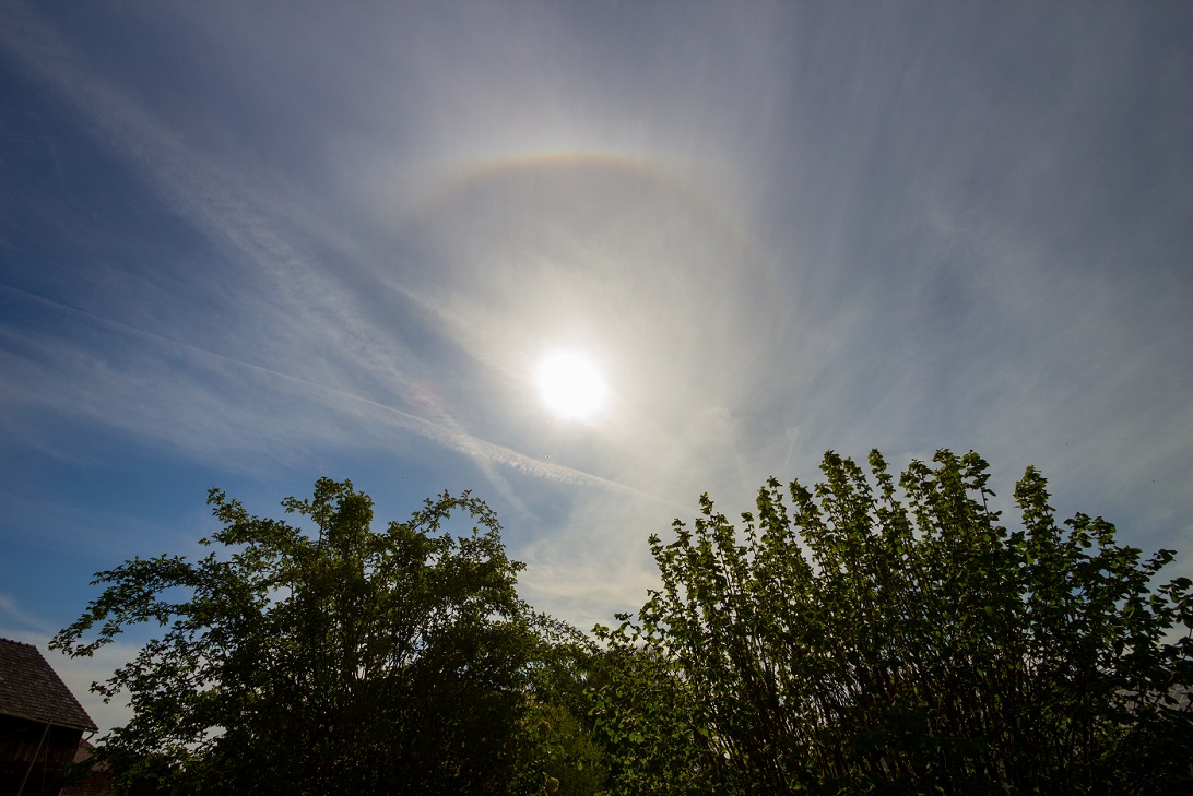In Coburg gab es gestern gegen 10:30 auch ein paar Halos. Vor allem der Horizontalkreis in den Cirren war gestern sehr schön anzusehen, wenn leider auch nur kurz.