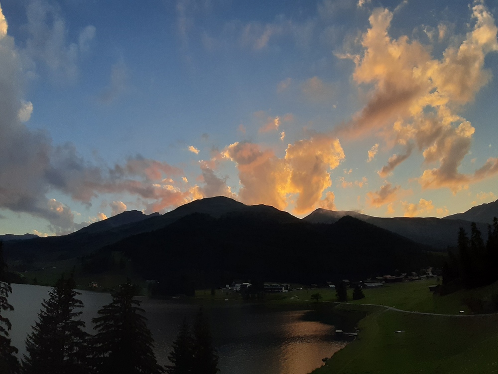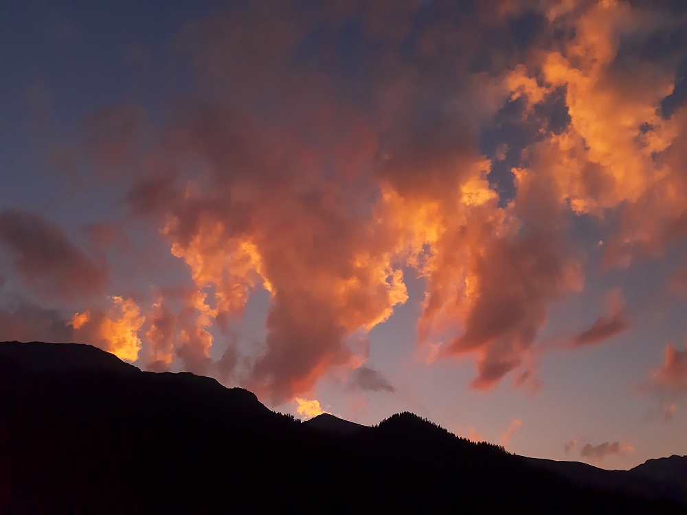 Sonnenaufgang um 5:55 irgendwo hinter fernen österreichischen Gipfeln